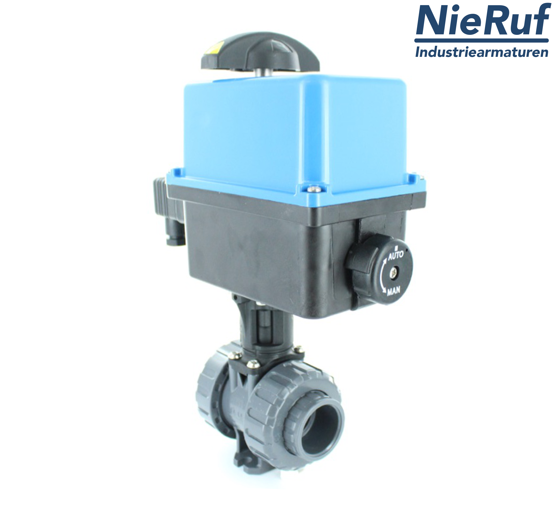 robinet à boisseau sphérique électrique en PVC DN10 - 3/8" pouce PVC-U KK05 joint: EPDM avec manchon taraudé (moteur électrique) 90-240 Volt robinet à boisseau sphérique automatisé en PVC pour fluides liquides & gazeux