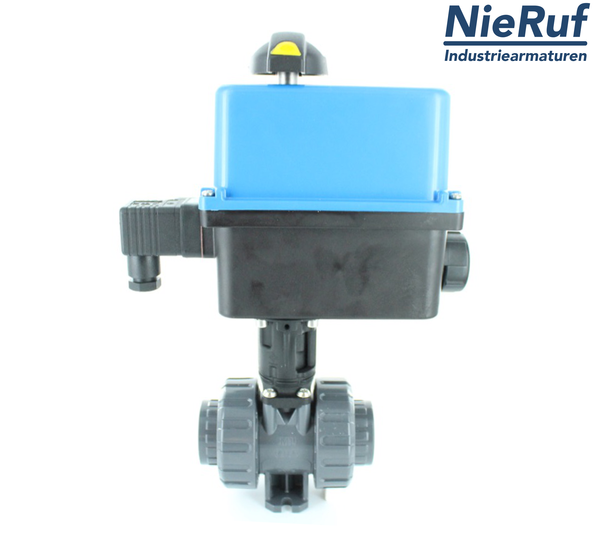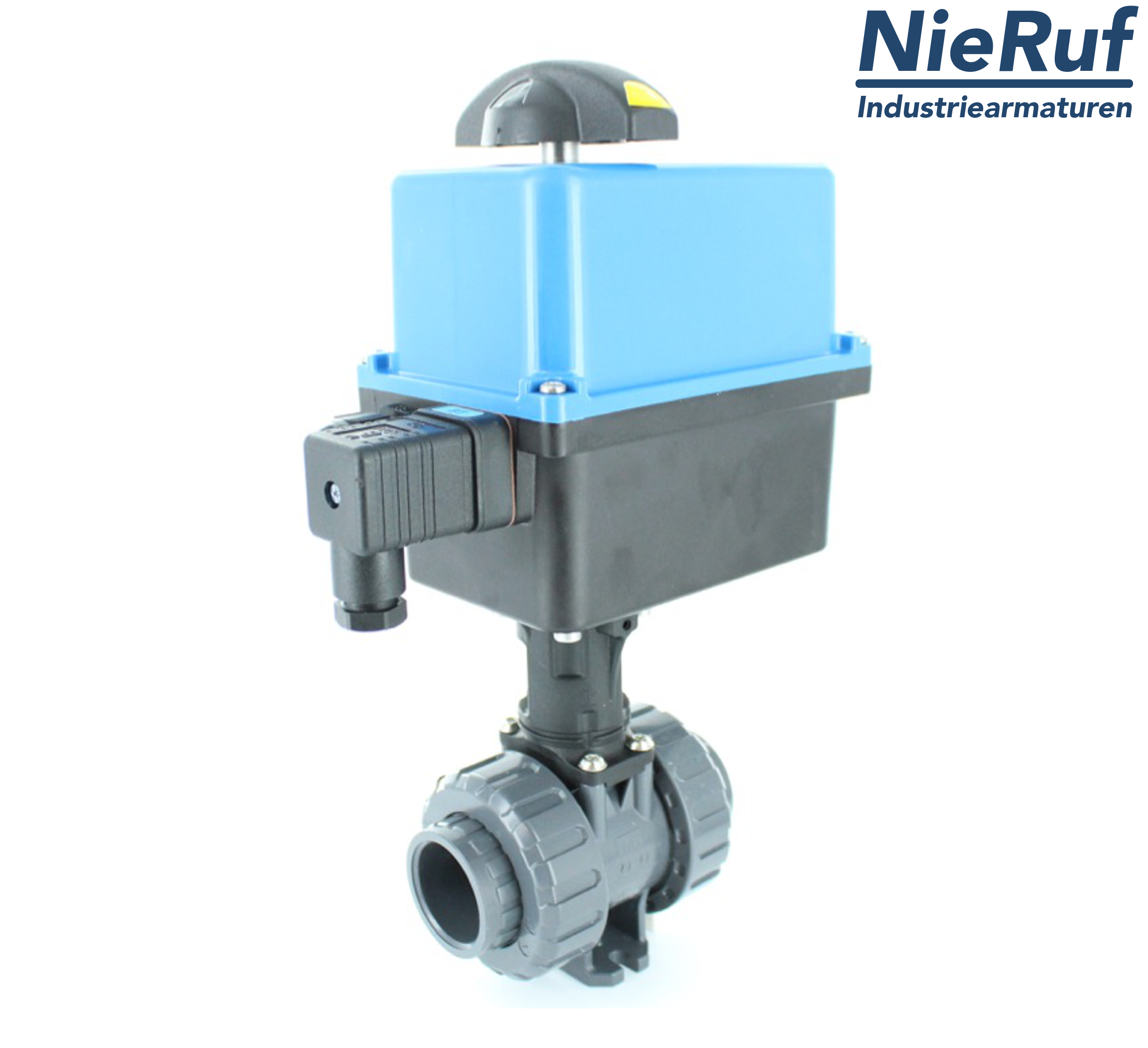 robinet à boisseau sphérique électrique en PVC DN25 - 1" pouce PVC-U KK05 joint: EPDM avec manchon taraudé (moteur électrique) 90-240 Volt robinet à boisseau sphérique automatisé en PVC pour fluides liquides & gazeux