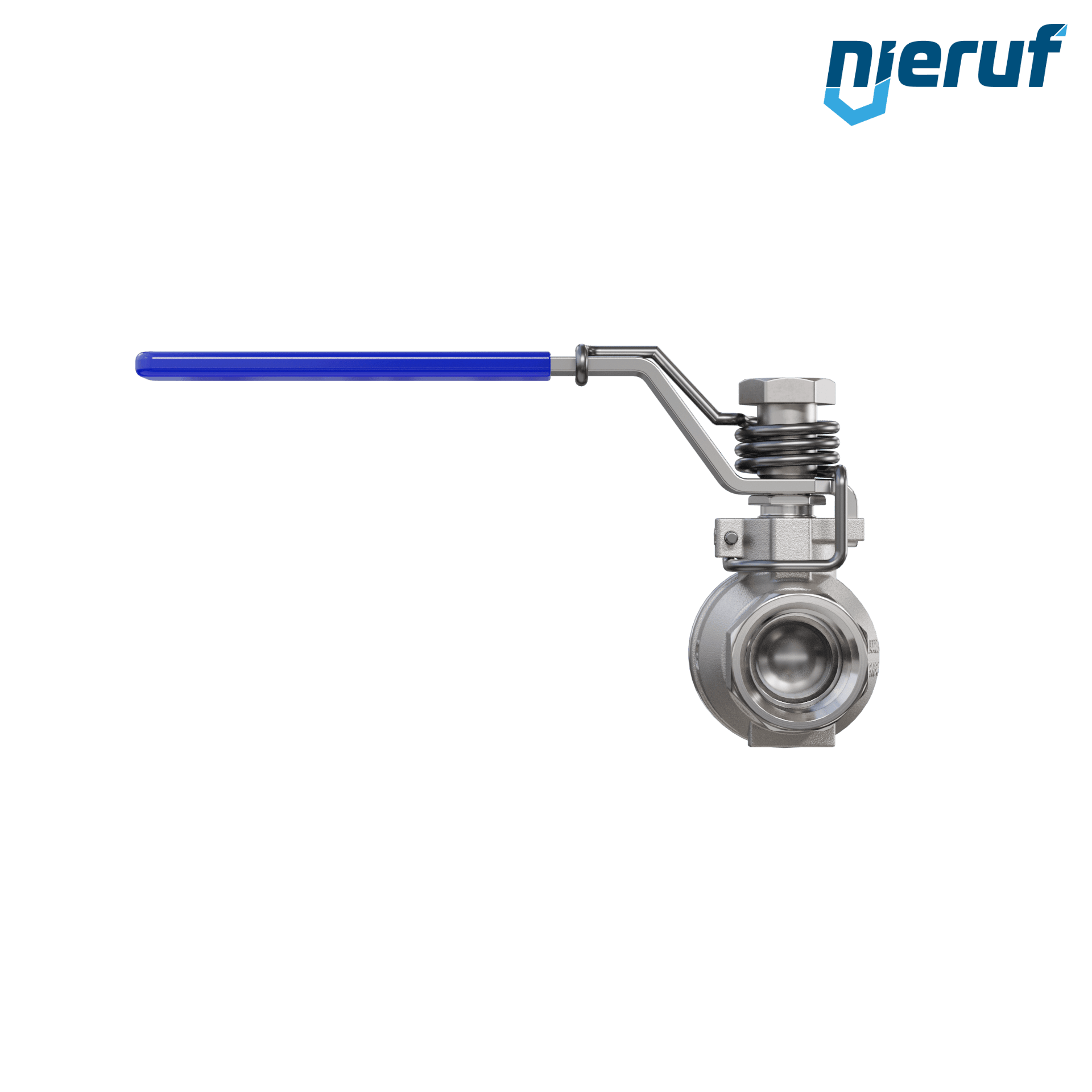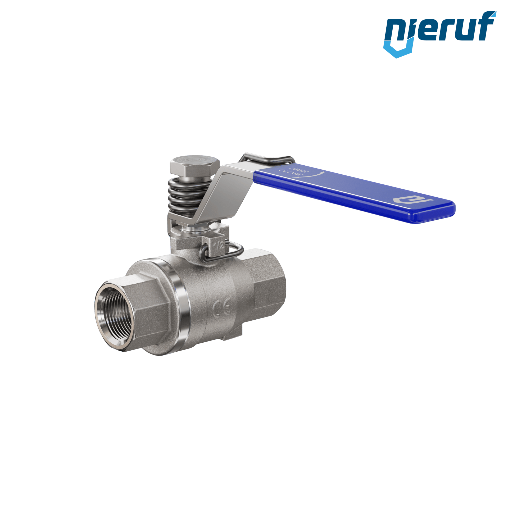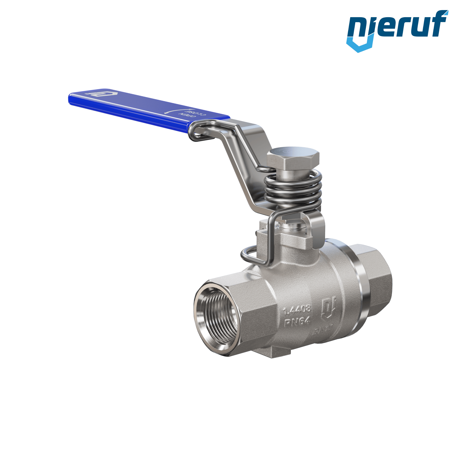 robinet à boisseau sphérique avec ressort de rappel DN15 - 1/2" pouce passage intégral joint en PTFE pour fluides liquides et gazeux en acier inoxydable 1.4408
