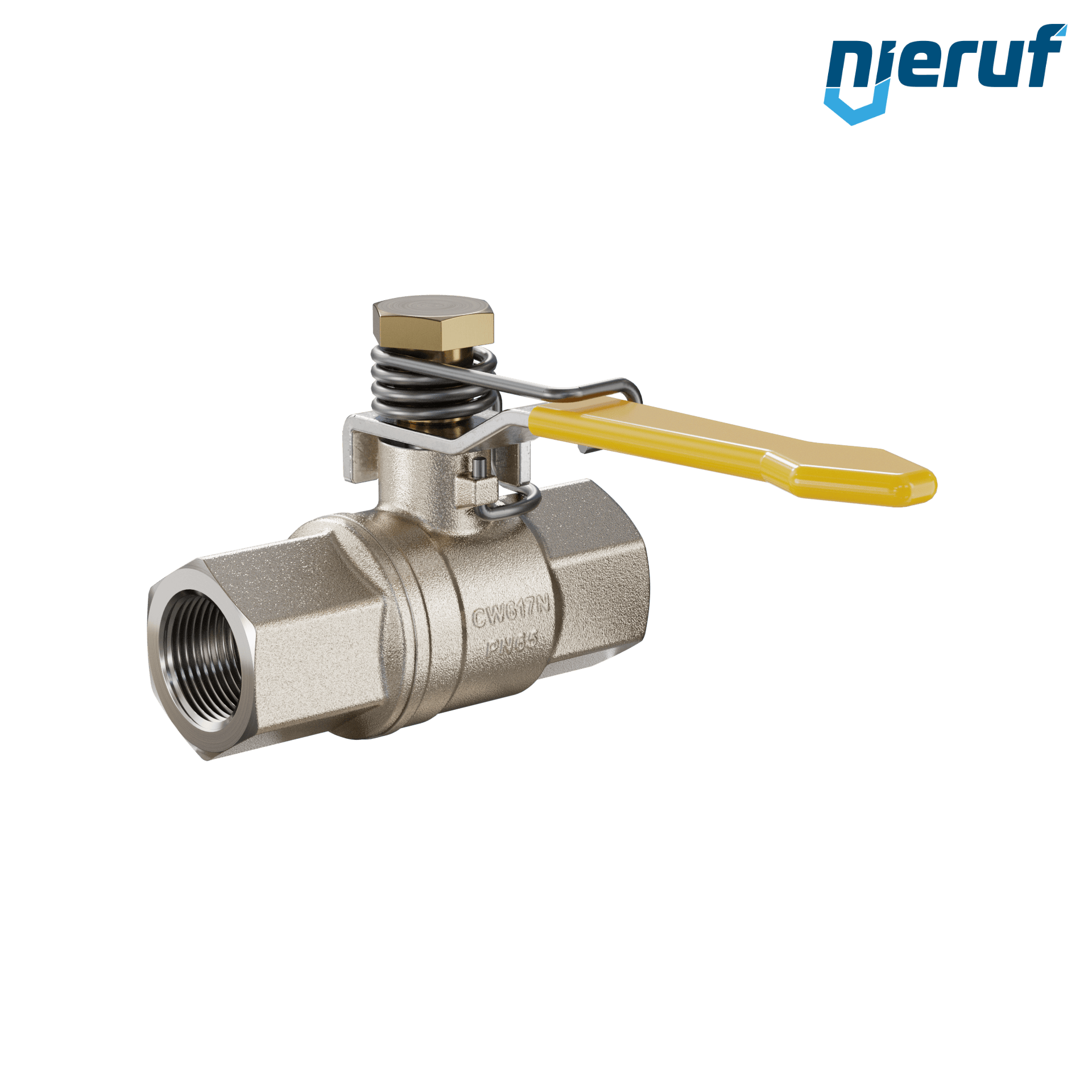 robinet à boisseau sphérique avec ressort de rappel DN15 - 1/2" pouce passage intégral 2 joints toriques Viton pour fluides liquides et gazeux