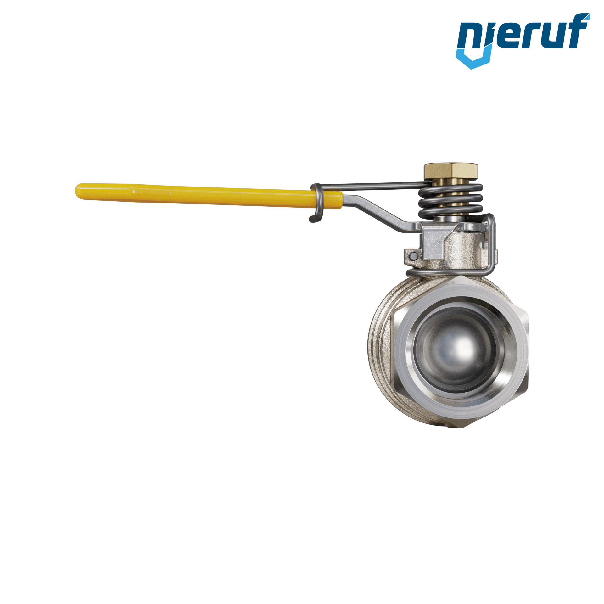 ce robinet à boisseau sphérique en laiton de haute qualité avec ressort de rappel est normalement en position fermée. Elle s'ouvre par la force exercée contre le ressort.