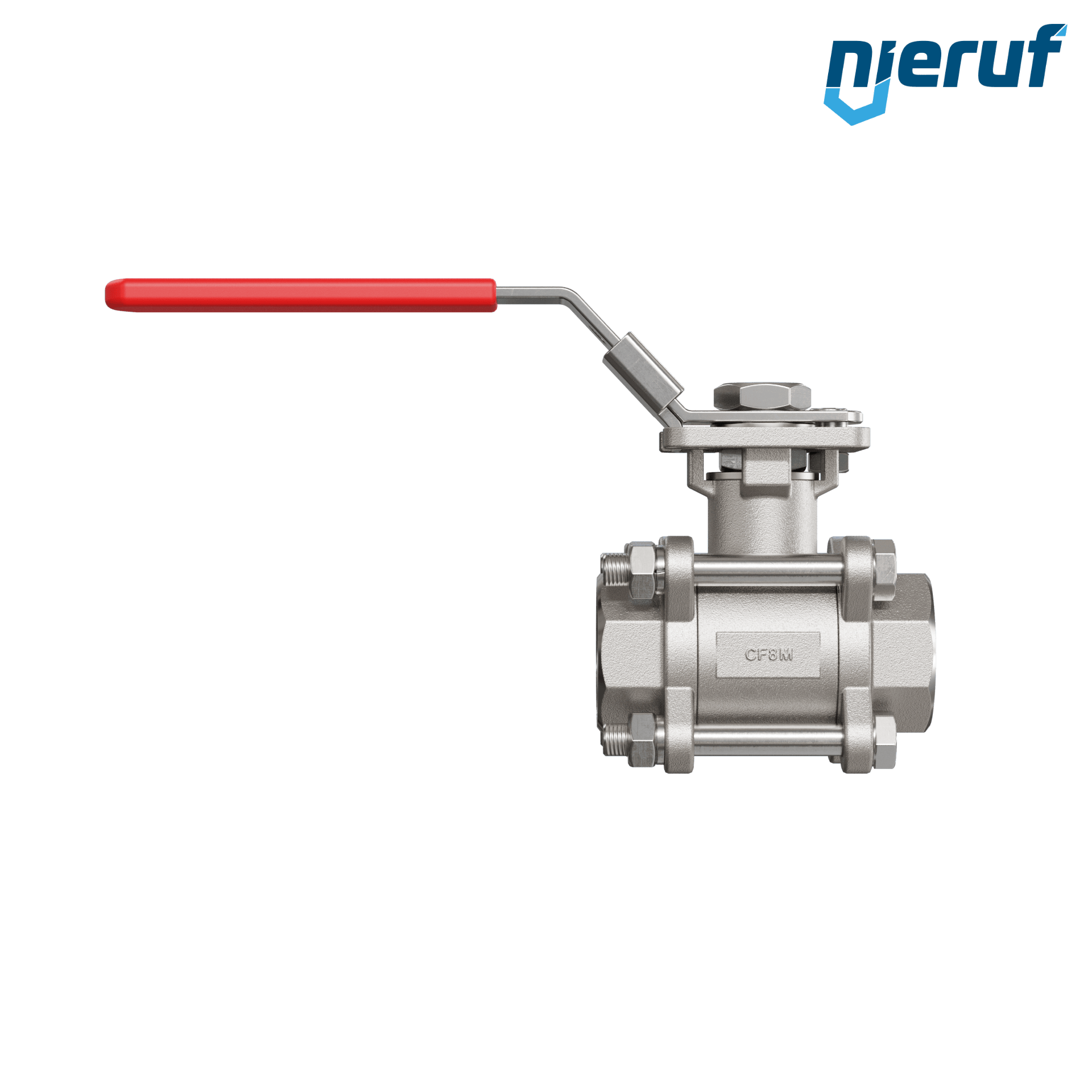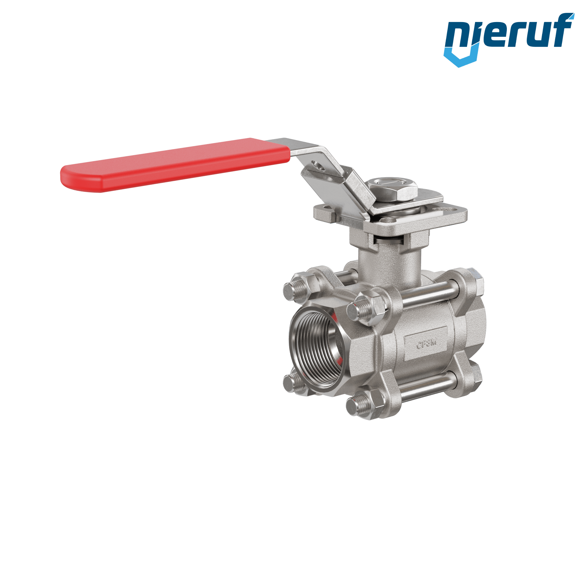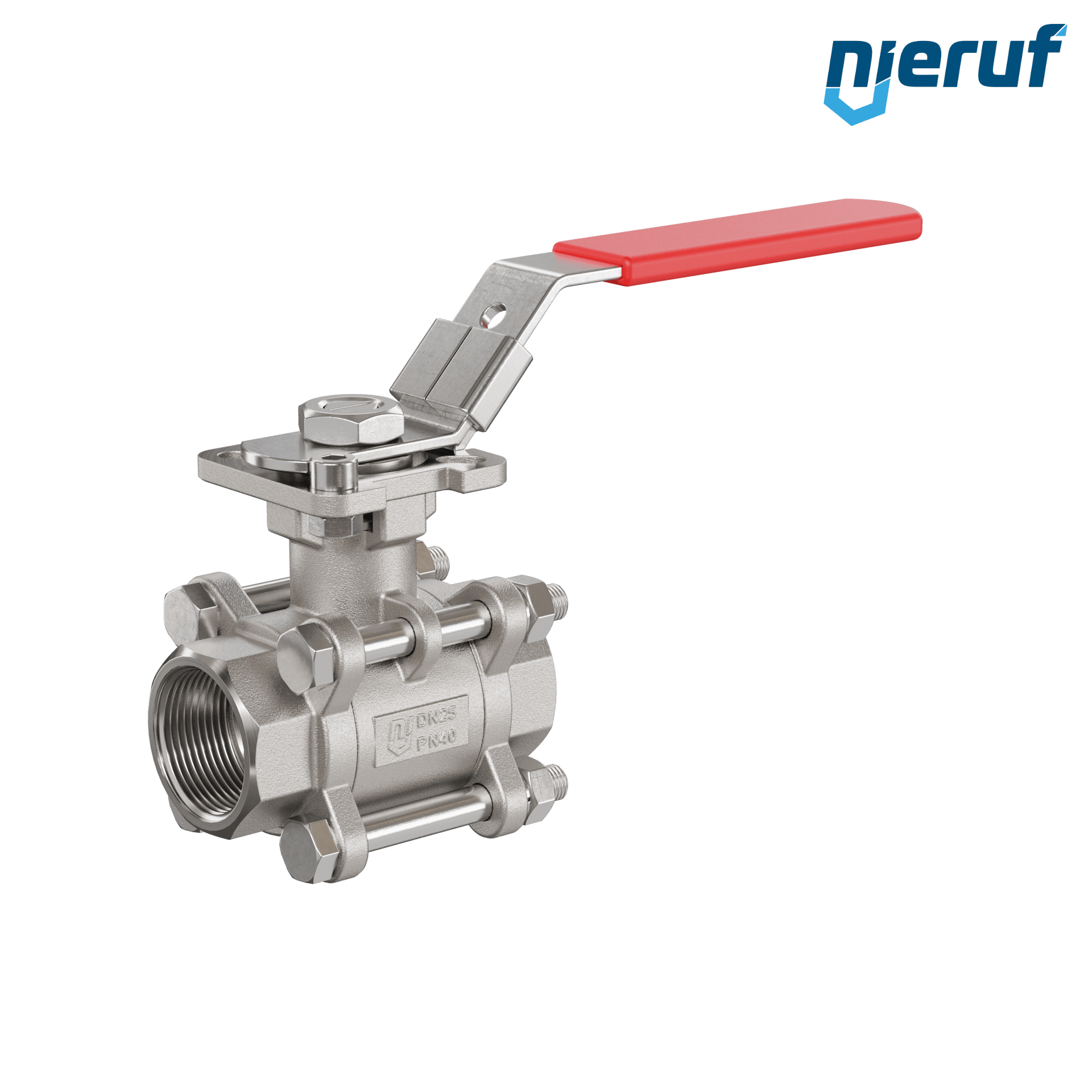 robinet à boisseau sphérique 2 voies à trois pièces GK20 avec bride de montage selon DIN ISO 5211 en acier inoxydable 1.4408 DN25 - 1" pouce femelle NPT pour fluides liquides et gazeux