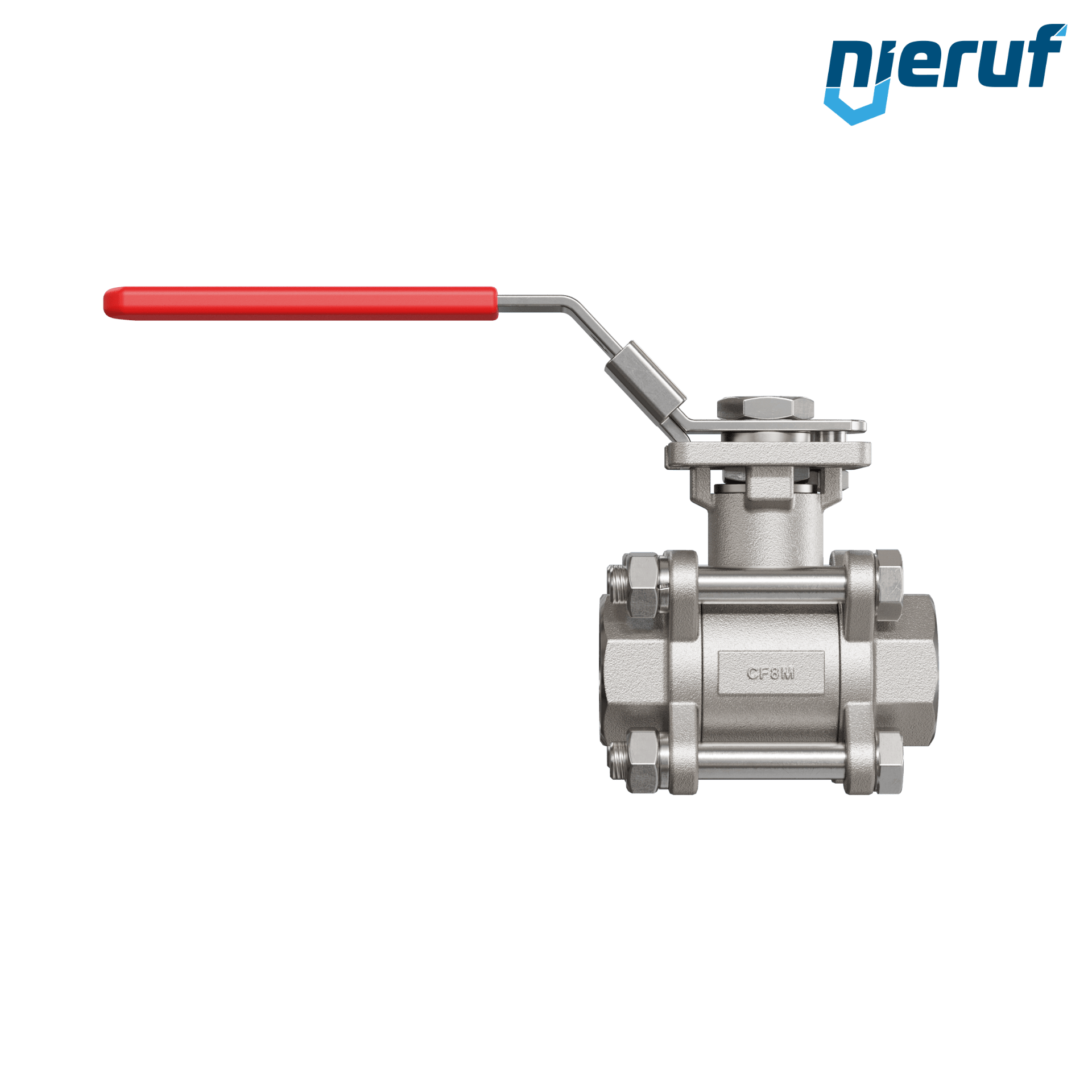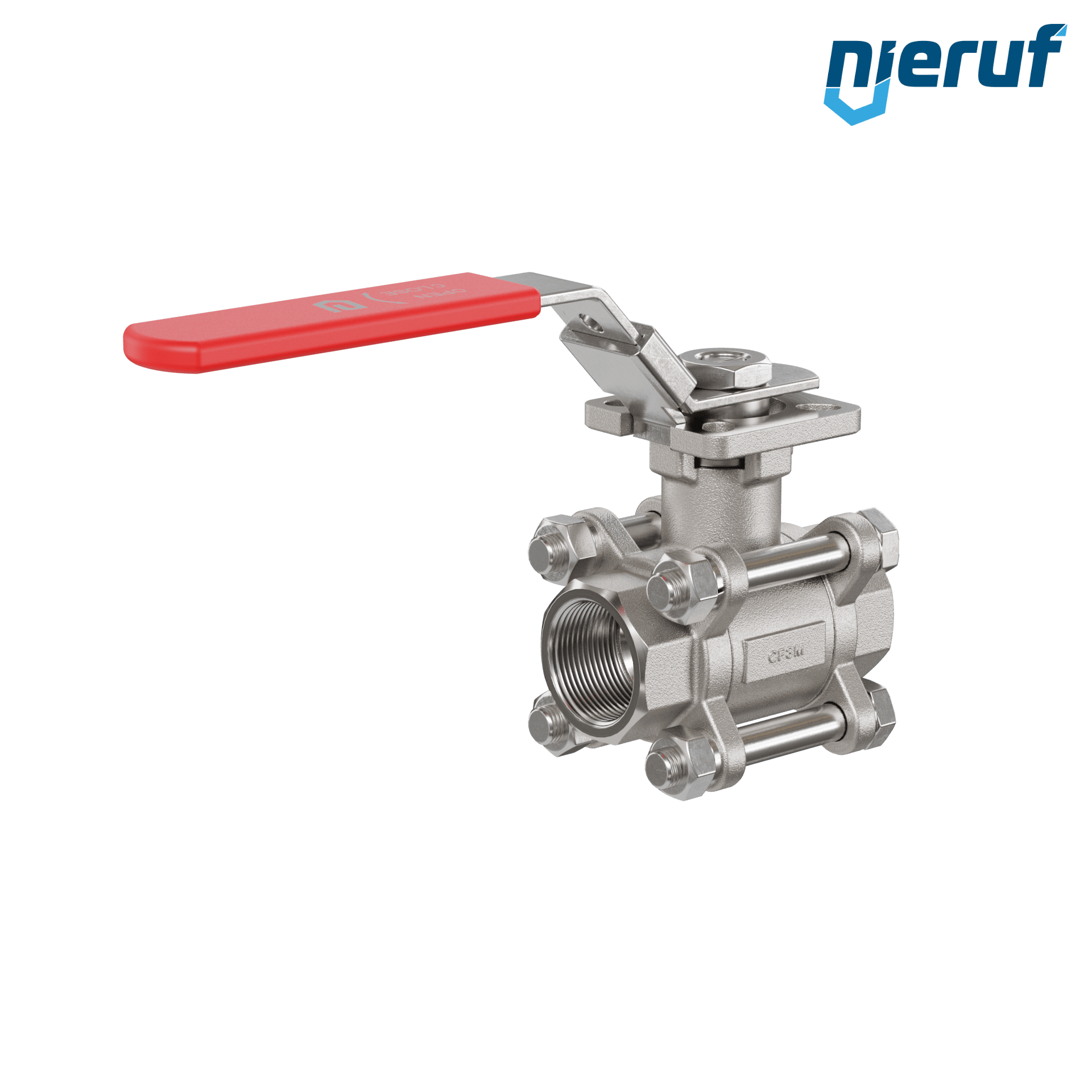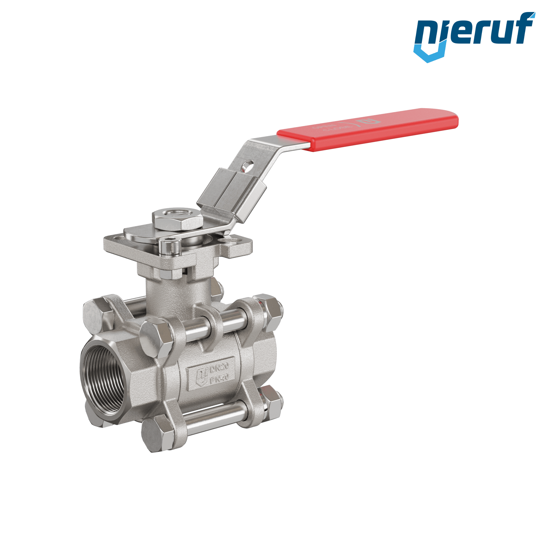 robinet à boisseau sphérique 2 voies à trois pièces GK20 avec bride de montage selon DIN ISO 5211 en acier inoxydable 1.4408 DN20 - 3/4" pouce femelle NPT pour fluides liquides et gazeux