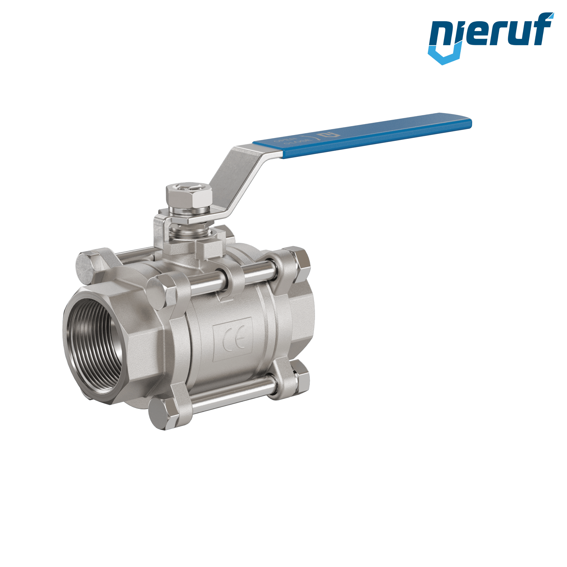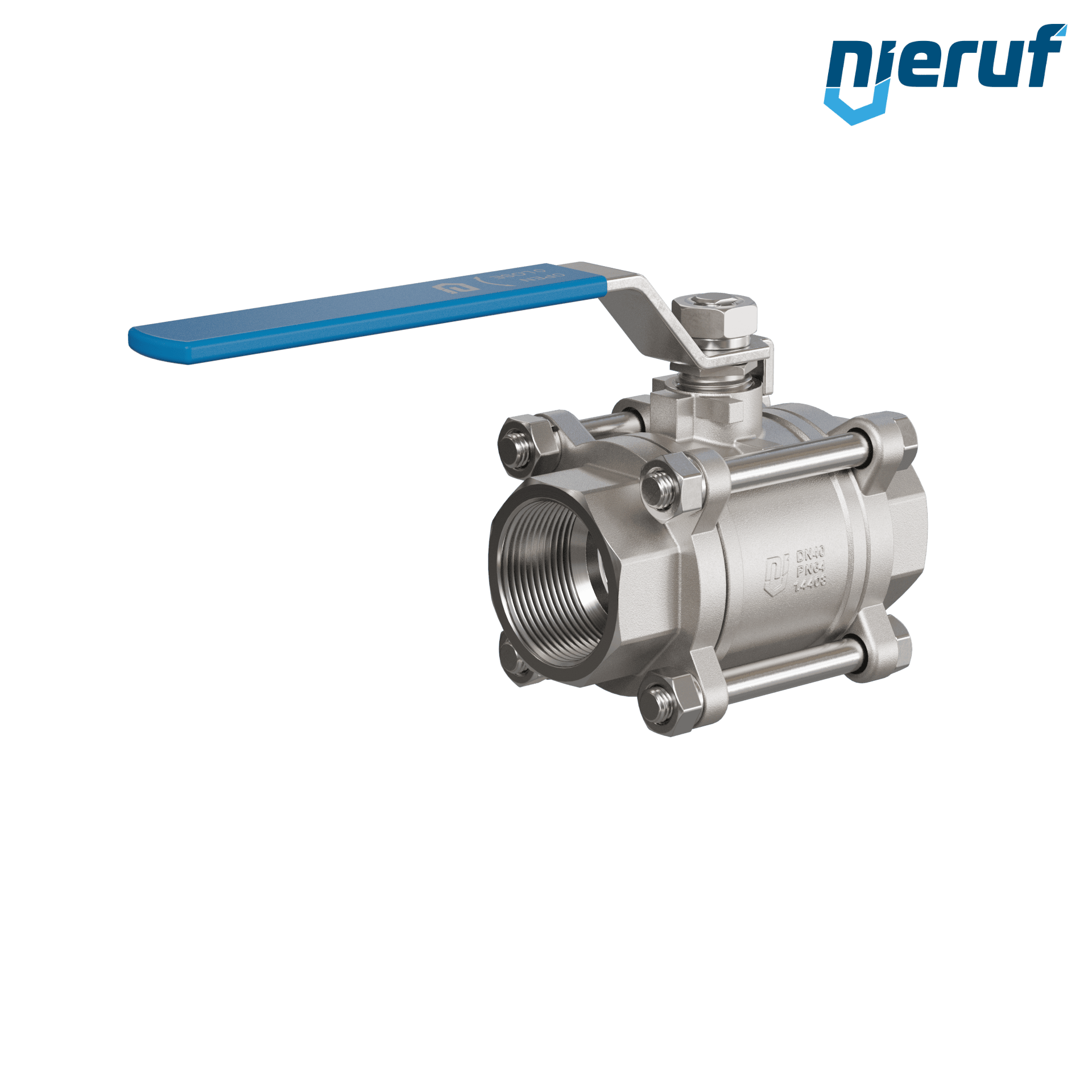robinet à boisseau sphérique en acier inoxydable DN40 - 1 1/2" pouce femelle passage intégral joint en PTFE pour fluides liquides et gazeux