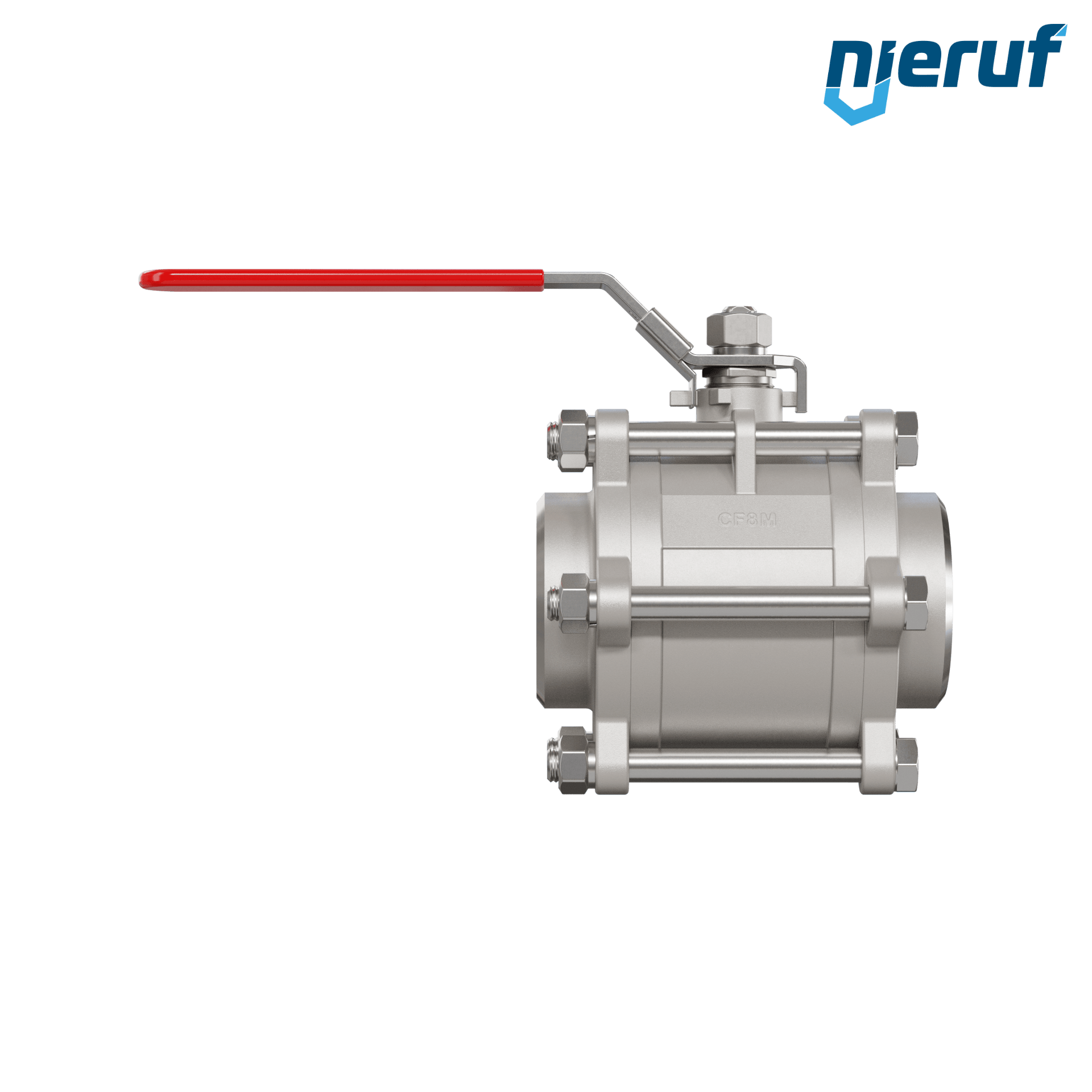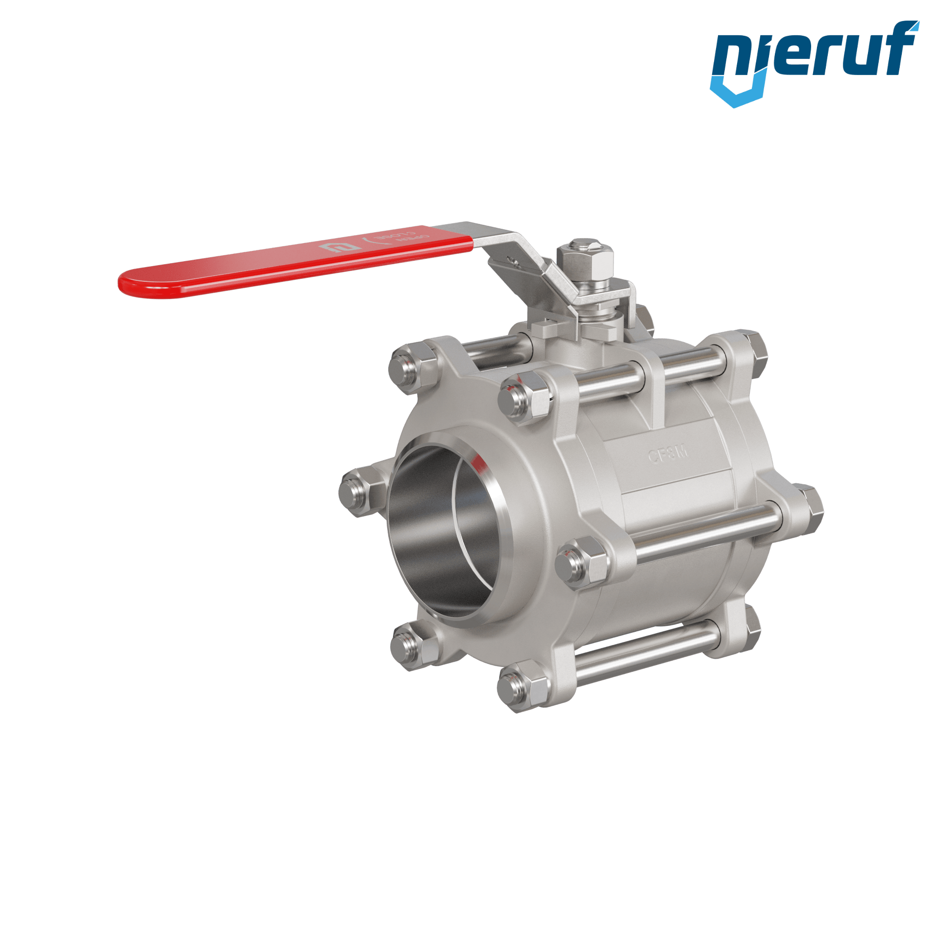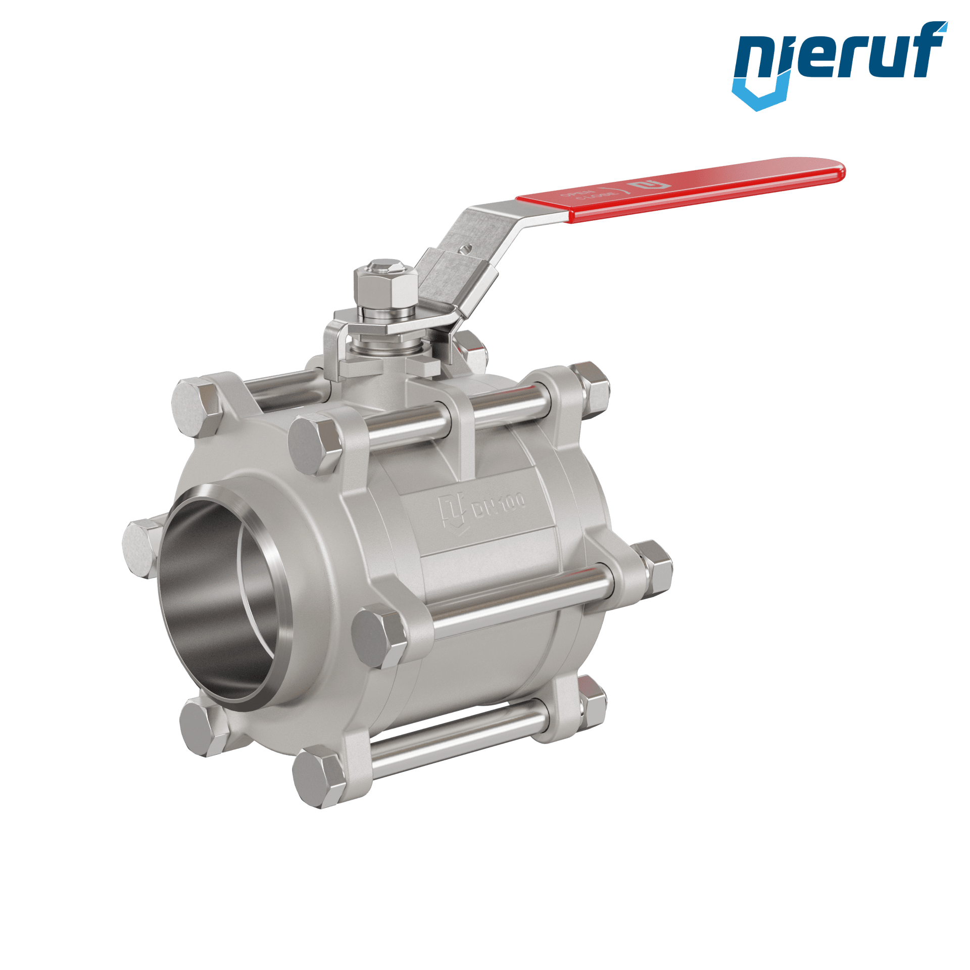 robinet à boisseau sphérique 2 voies à trois pièces en acier inoxydable 1.4408 DN100 - 4" pouce avec extrémités à souder pour fluides liquides et gazeux