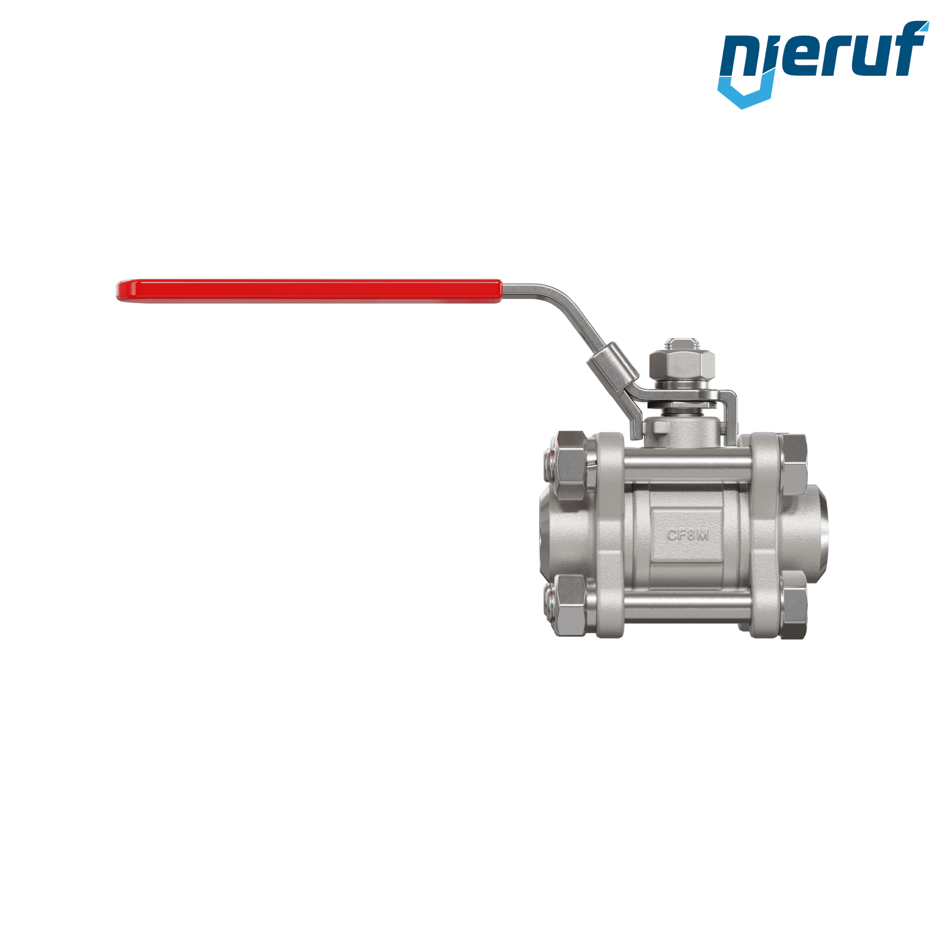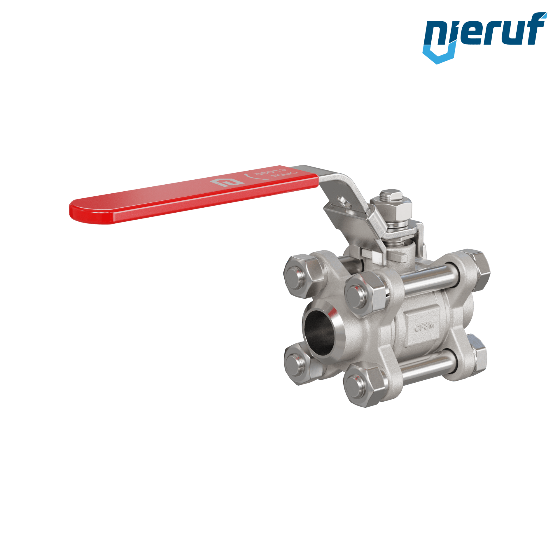 robinet à boisseau sphérique 2 voies à trois pièces en acier inoxydable 1.4408 DN15 - 1/2" pouce avec extrémités à souder pour fluides liquides et gazeux
