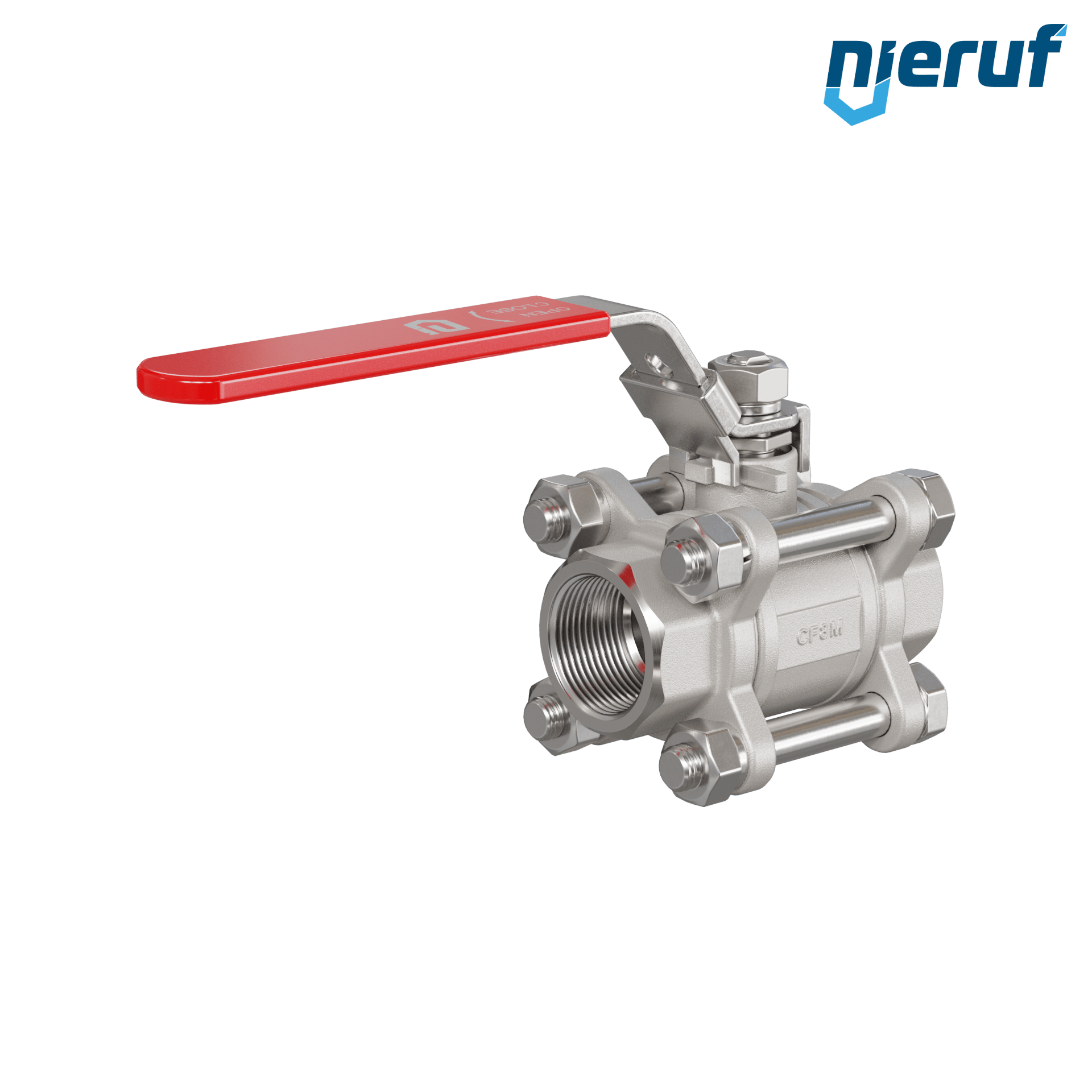 robinet à boisseau sphérique 2 voies à trois pièces en acier inoxydable 1.4408 DN20 - 3/4" pouce femelle pour fluides liquides et gazeux