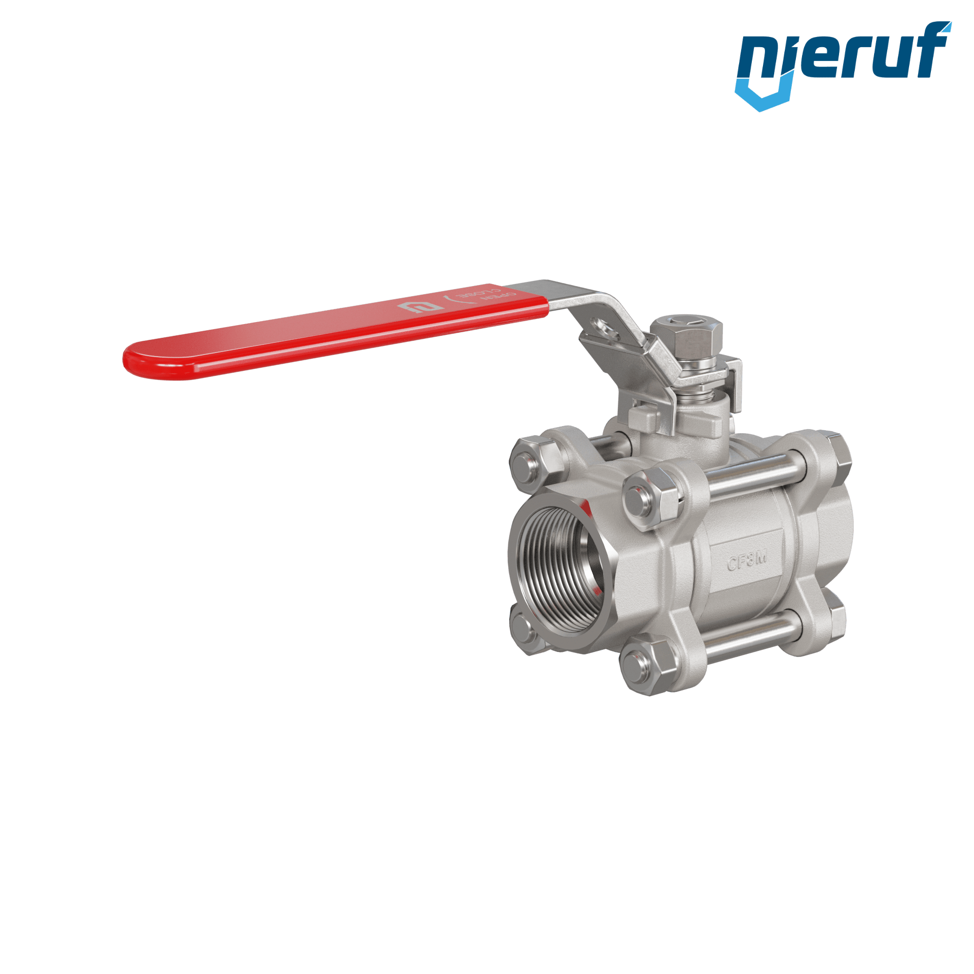 robinet à boisseau sphérique 2 voies à trois pièces en acier inoxydable 1.4408 DN25 - 1" pouce femelle pour fluides liquides et gazeux
