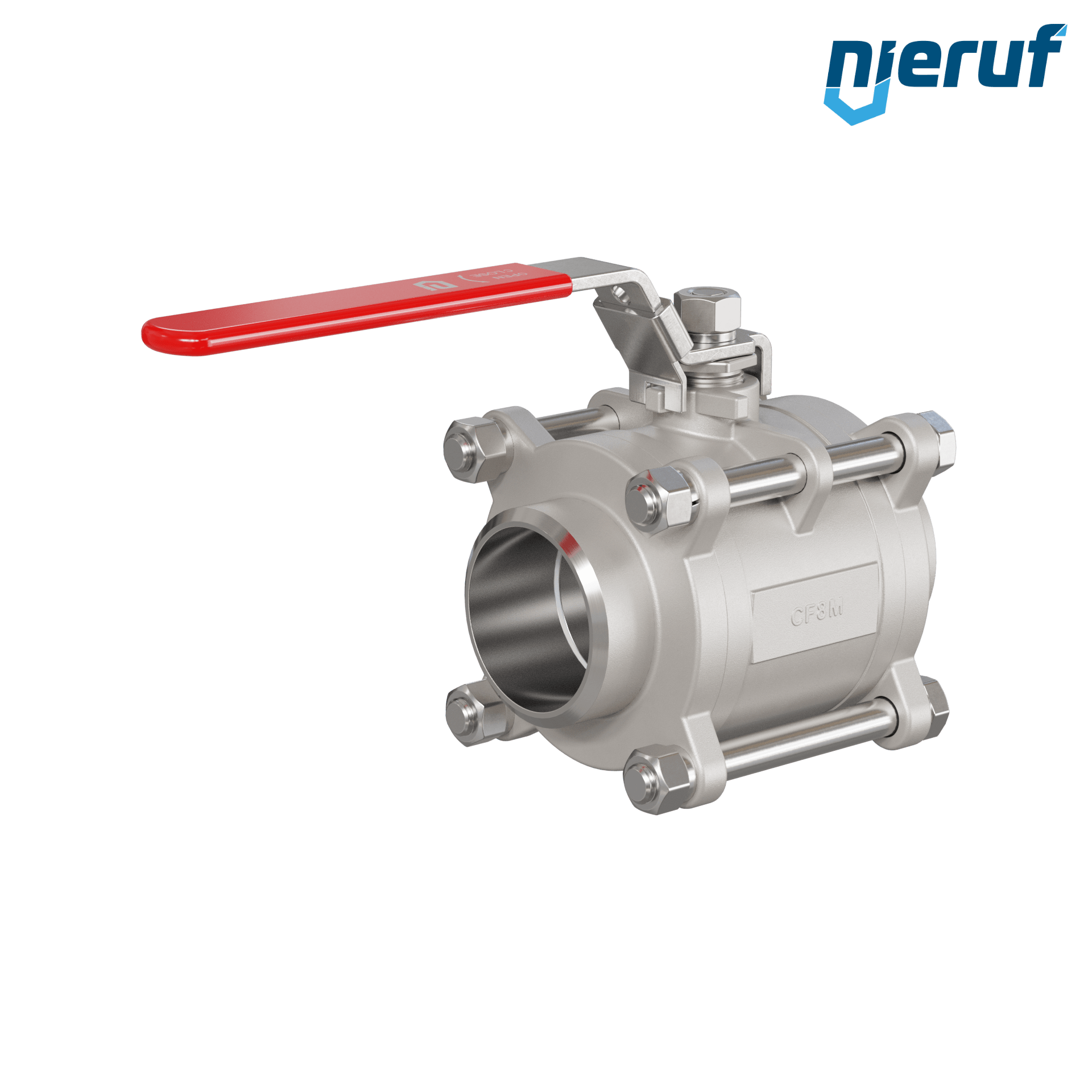 robinet à boisseau sphérique 2 voies à trois pièces en acier inoxydable 1.4408 DN65 - 2 1/2" pouce avec extrémités à souder pour fluides liquides et gazeux