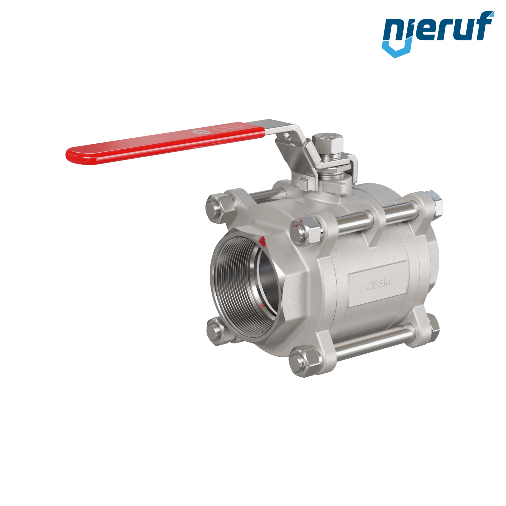 robinet à boisseau sphérique 2 voies à trois pièces en acier inoxydable 1.4408 DN65 - 2 1/2" pouce femelle pour fluides liquides et gazeux