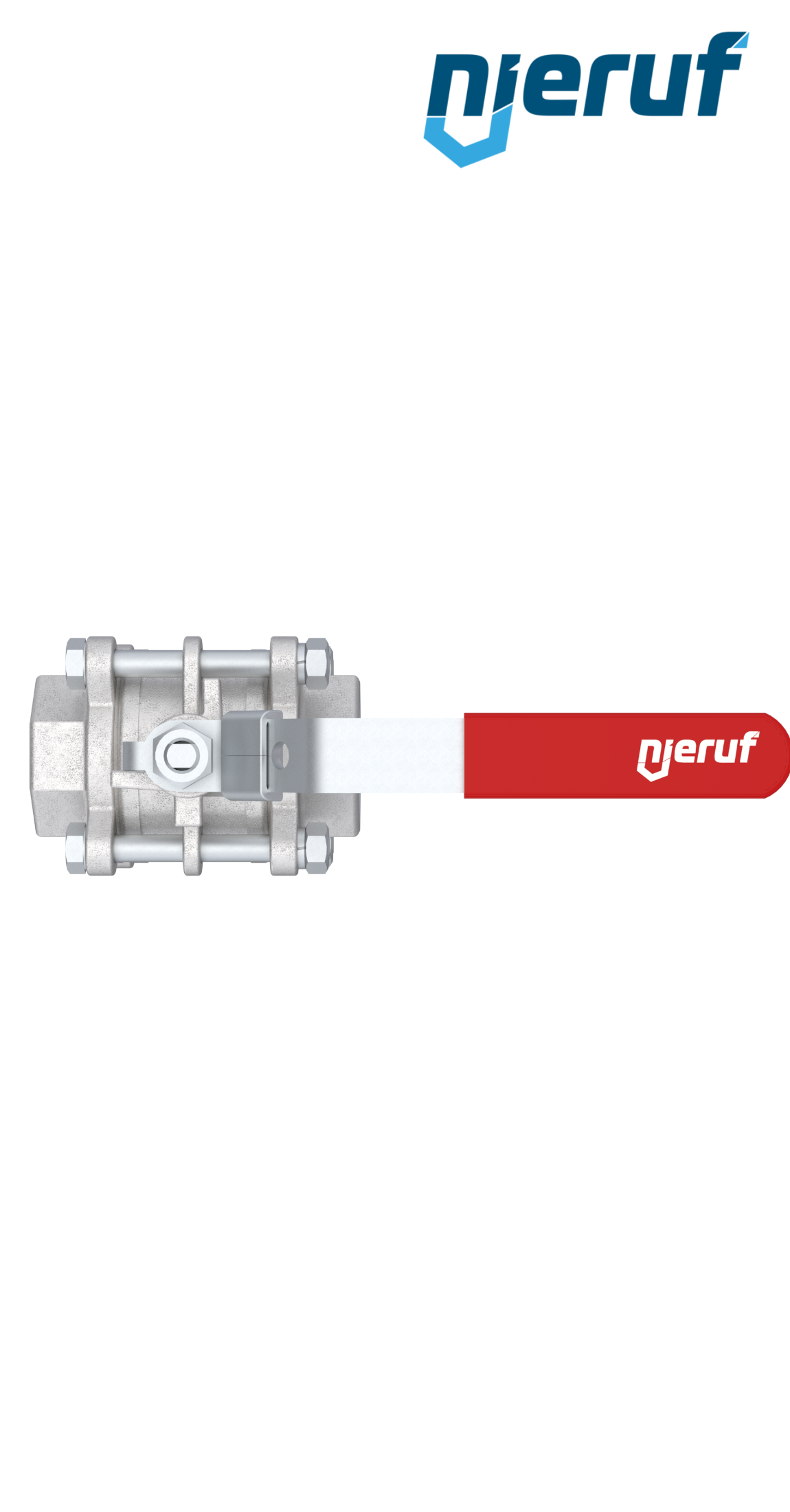 robinet à boisseau sphérique 2 voies à trois pièces en acier inoxydable 1.4408 DN8 - 1/4" pouce femelle pour fluides liquides et gazeux