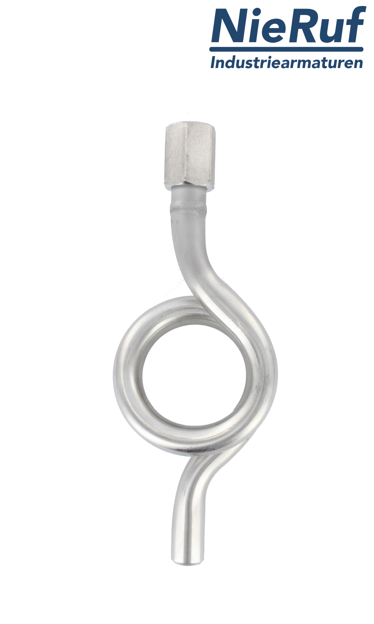 siphon avec prise de pression verticale selon DIN 16282 - Forme D en acier inoxydable 1.4571 avec forme cor de chasse 1/2"