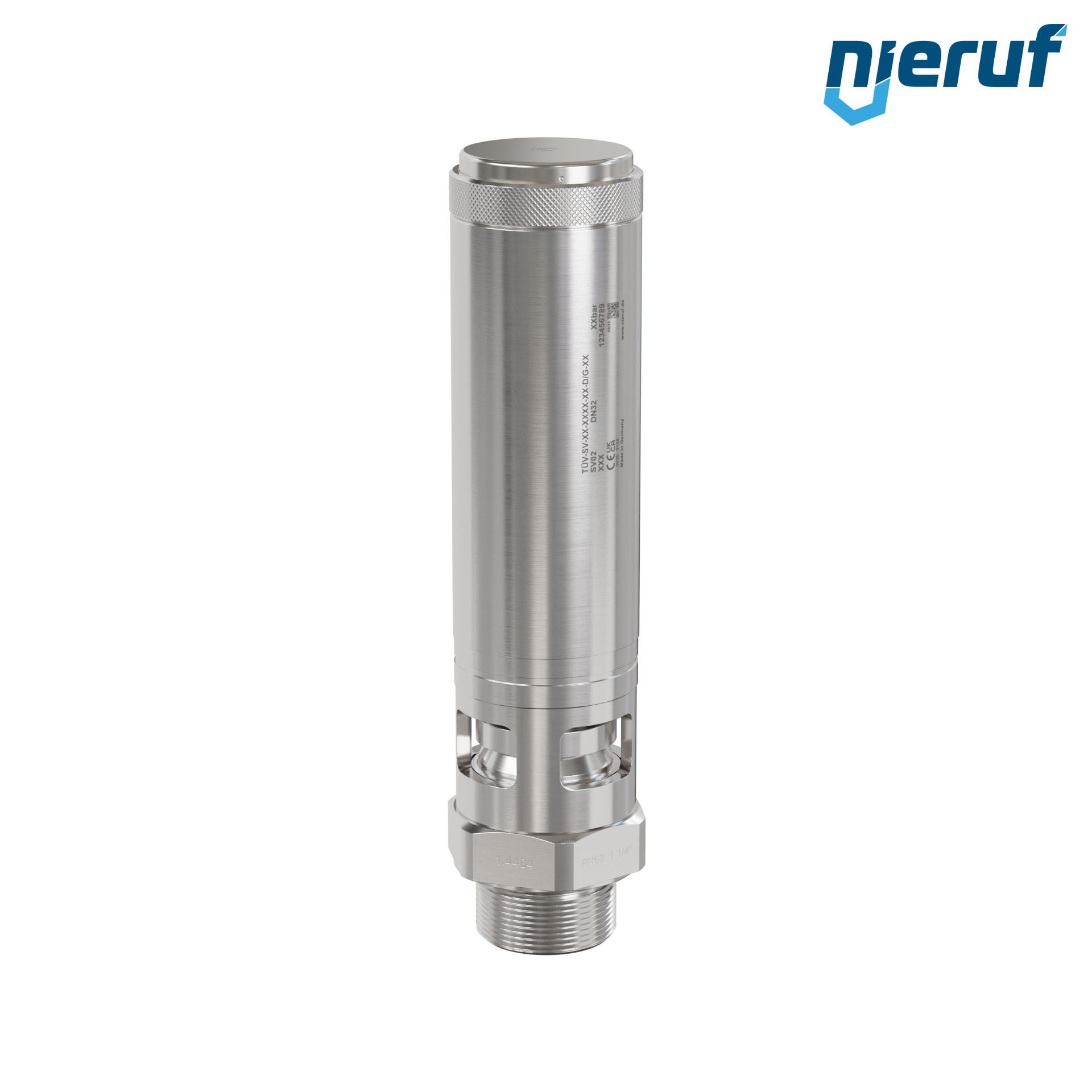 soupape de sûreté 1 1/4" mâle modèle SV02 avec décharge libre pour air comprimé et applications pneumatiques, en acier inoxydable avec joint en FKM , pression de réglage 0,2 - 25,0 bar - pour pressions plus élevées : version PTFE disponible
