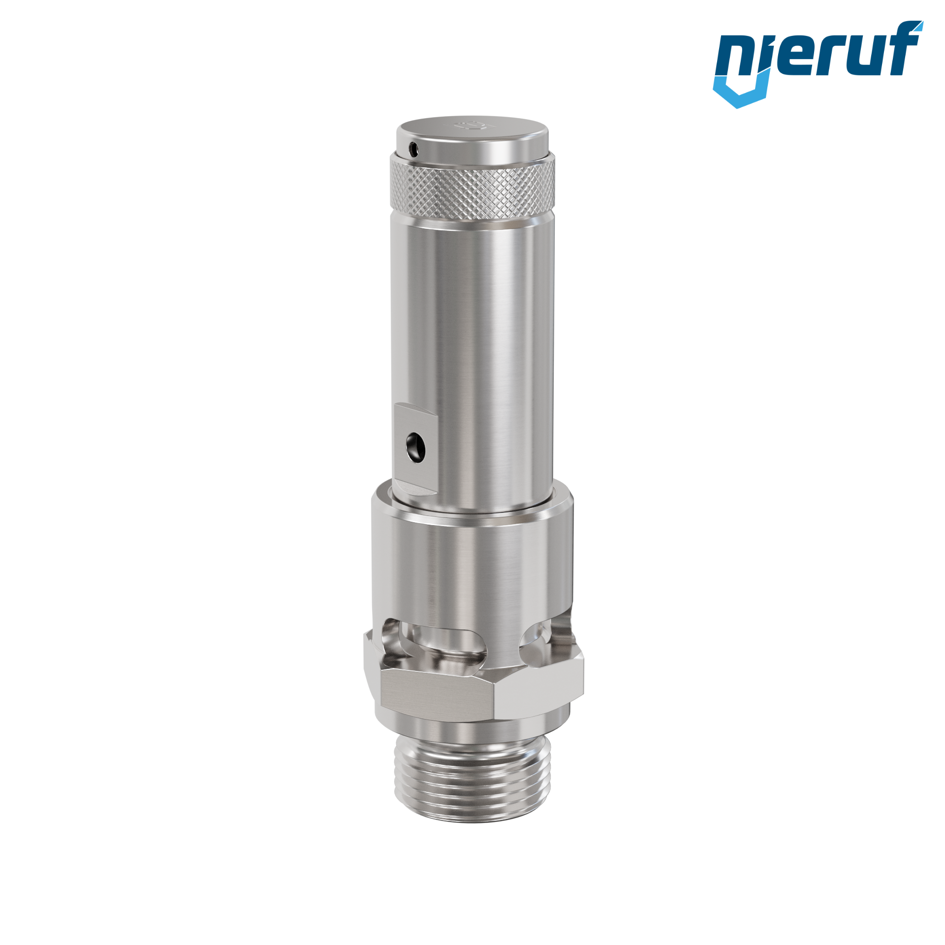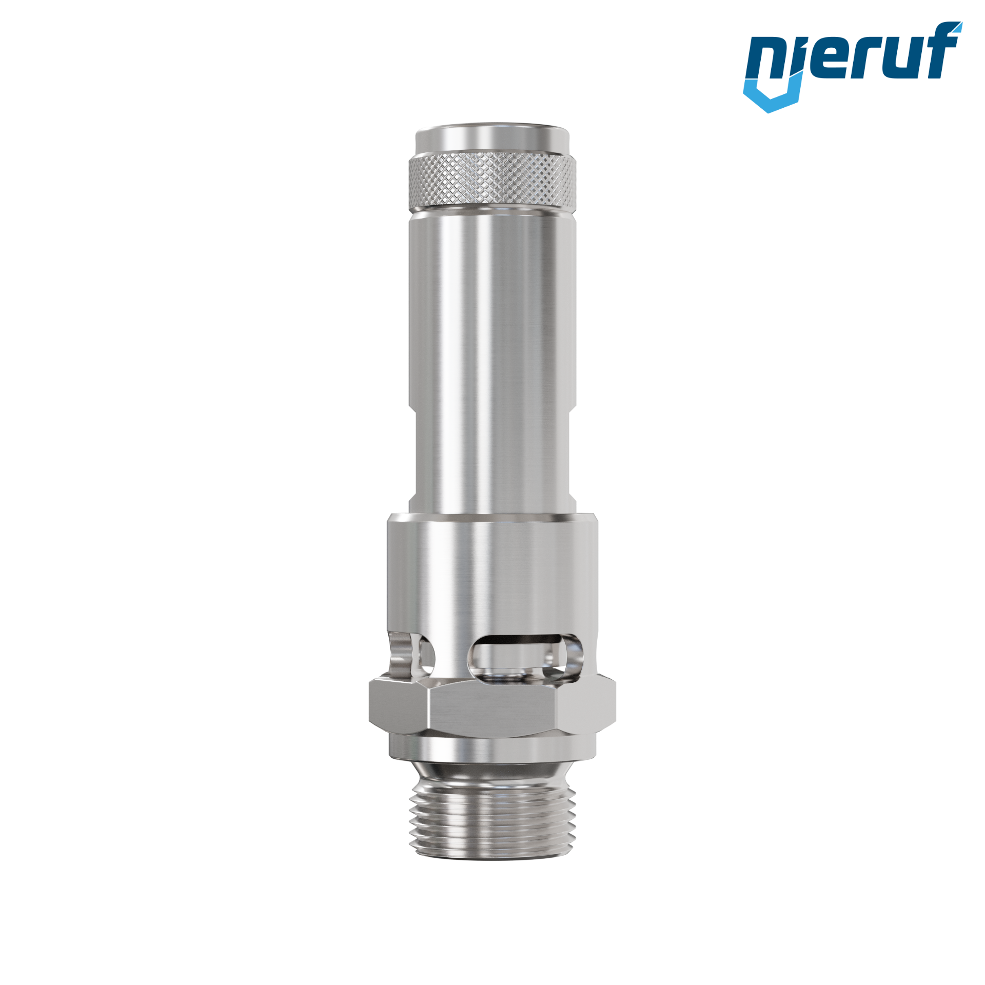 soupape de sûreté 1/2" mâle modèle SV02 avec décharge libre pour air comprimé et applications pneumatiques, en acier inoxydable avec joint en FKM , pression de réglage 0,2 - 25,0 bar - pour pressions plus élevées : version PTFE disponible