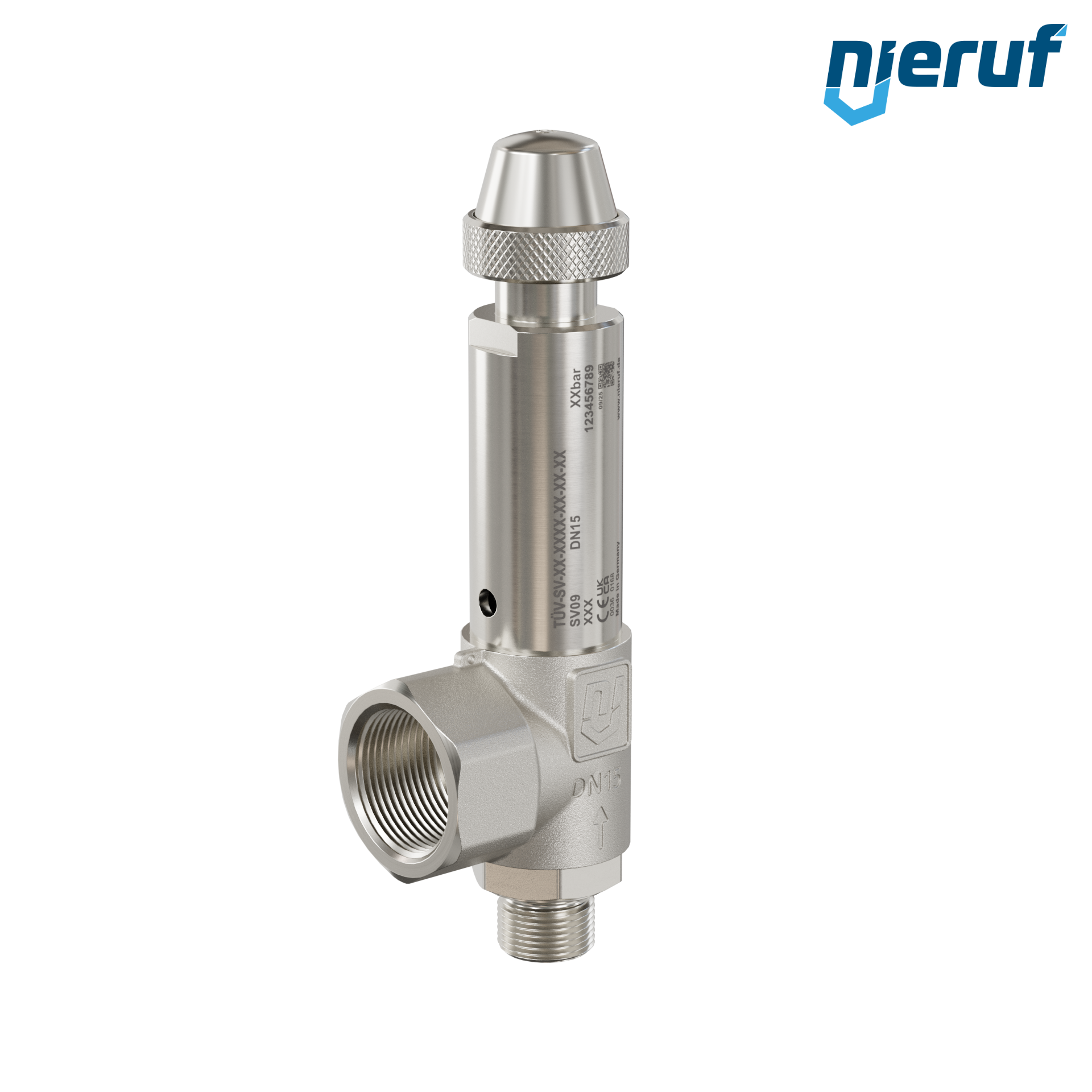 soupape de sûreté 1/2" mâle BSP-P SV09 pour fluides gazeux neutres en acier inoxydable joint NBR réglage de la pression 0,5 - 25.0 bar - pour pressions plus élevées : version PTFE disponible