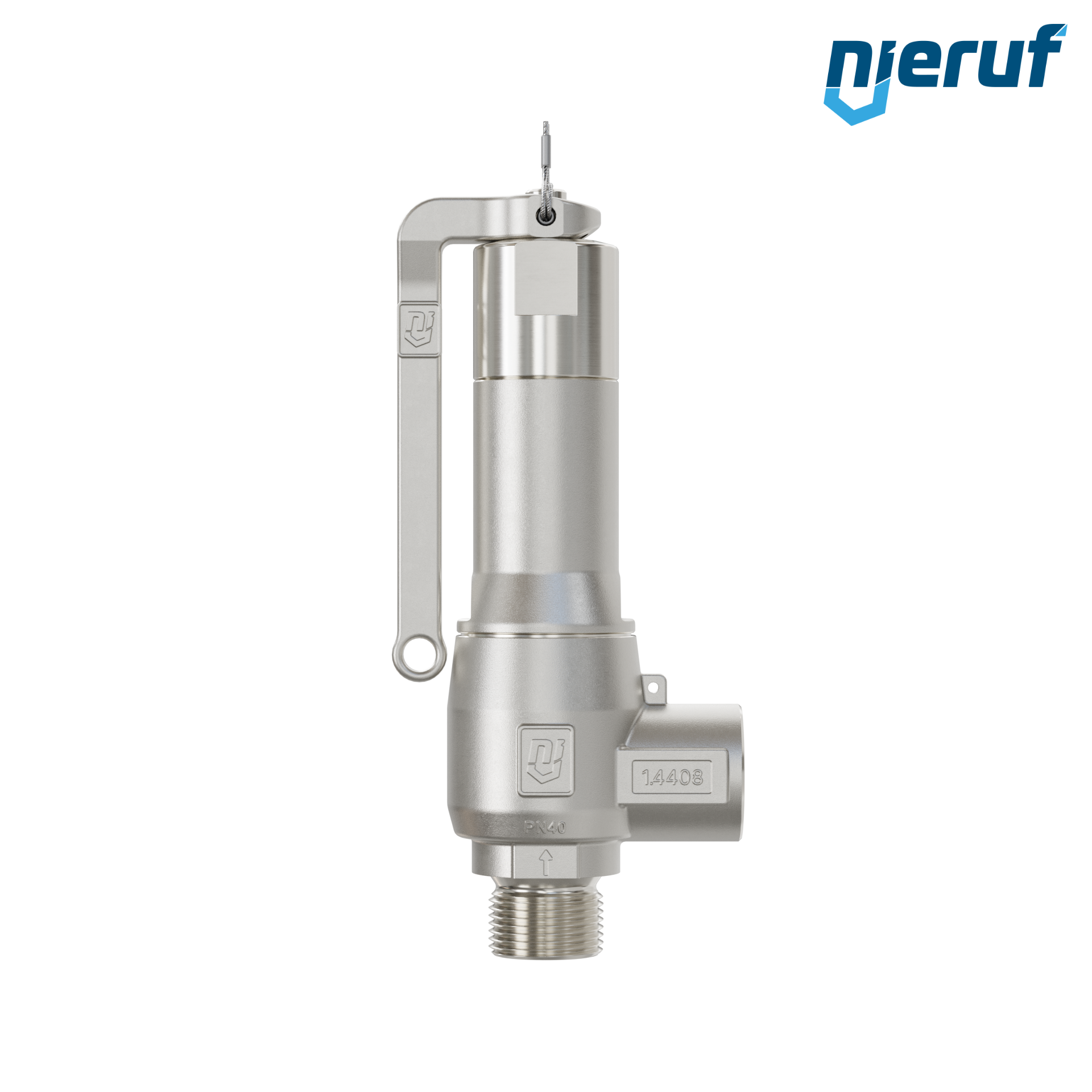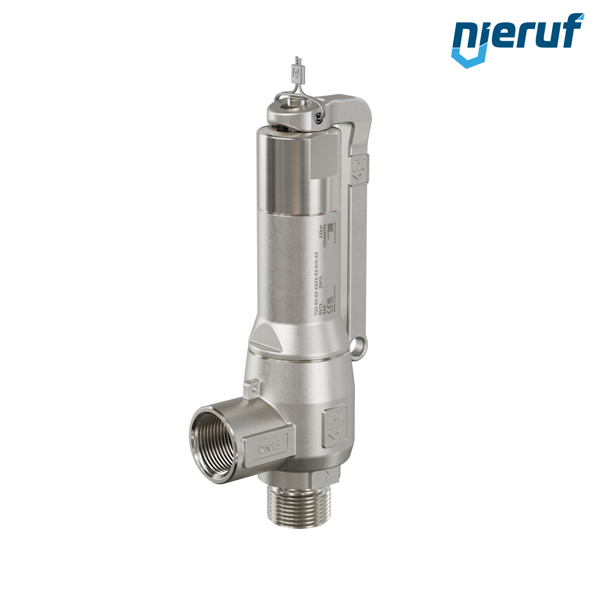 soupape de sûreté 1/2" mâle NPT x 1/2" femelle SV13 pour fluides liquides et gazeux en acier inoxydable joint PTFE pression 0,5- 25,0 bar avec levier