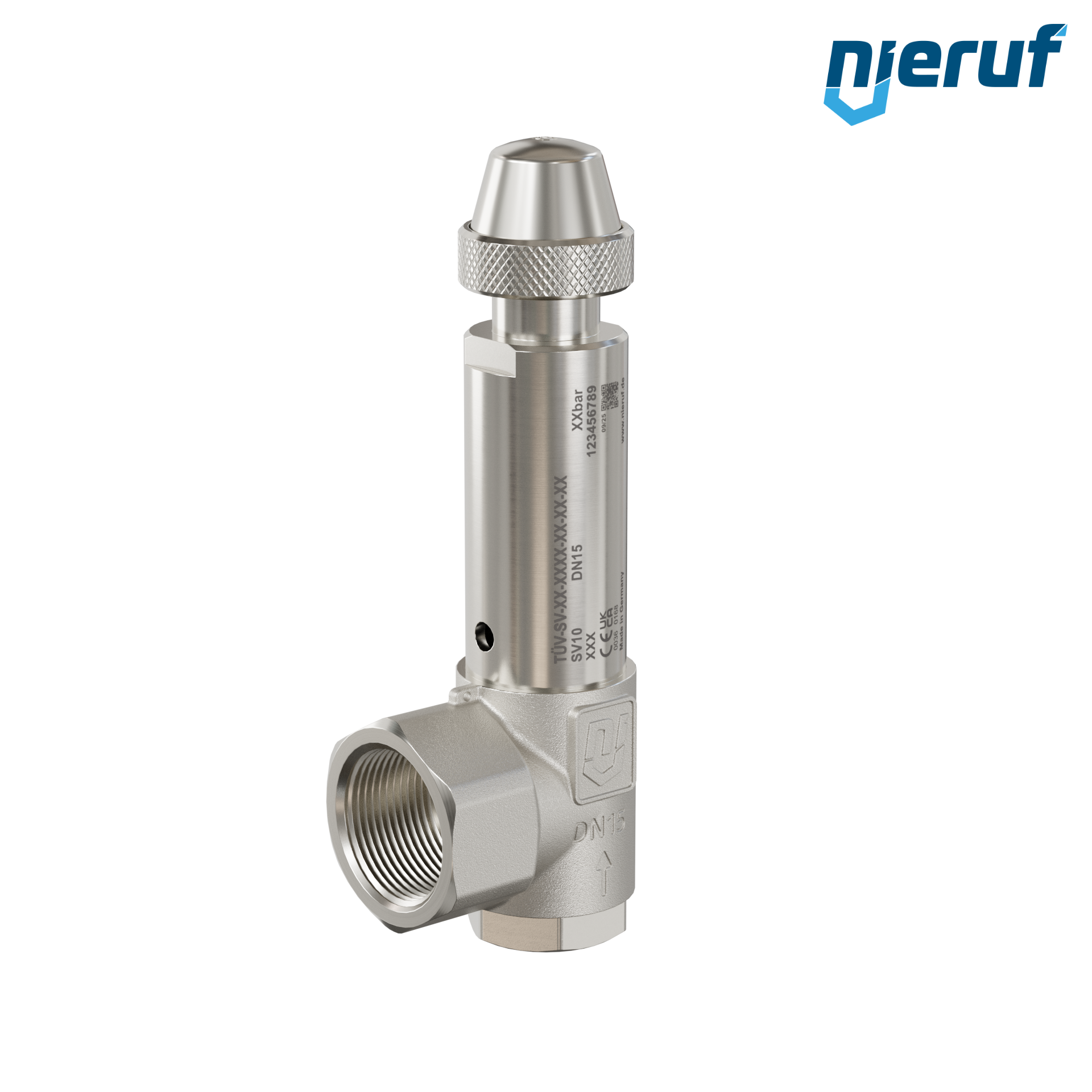 soupape de sûreté 1/2" avec manchon d'étanchéité SV10 pour fluides gazeux en acier inoxydable joint NBR réglage de la pression 1,0 - 25.0 bar - pour pressions plus élevées : version PTFE disponible mécanisme de levage rotatif