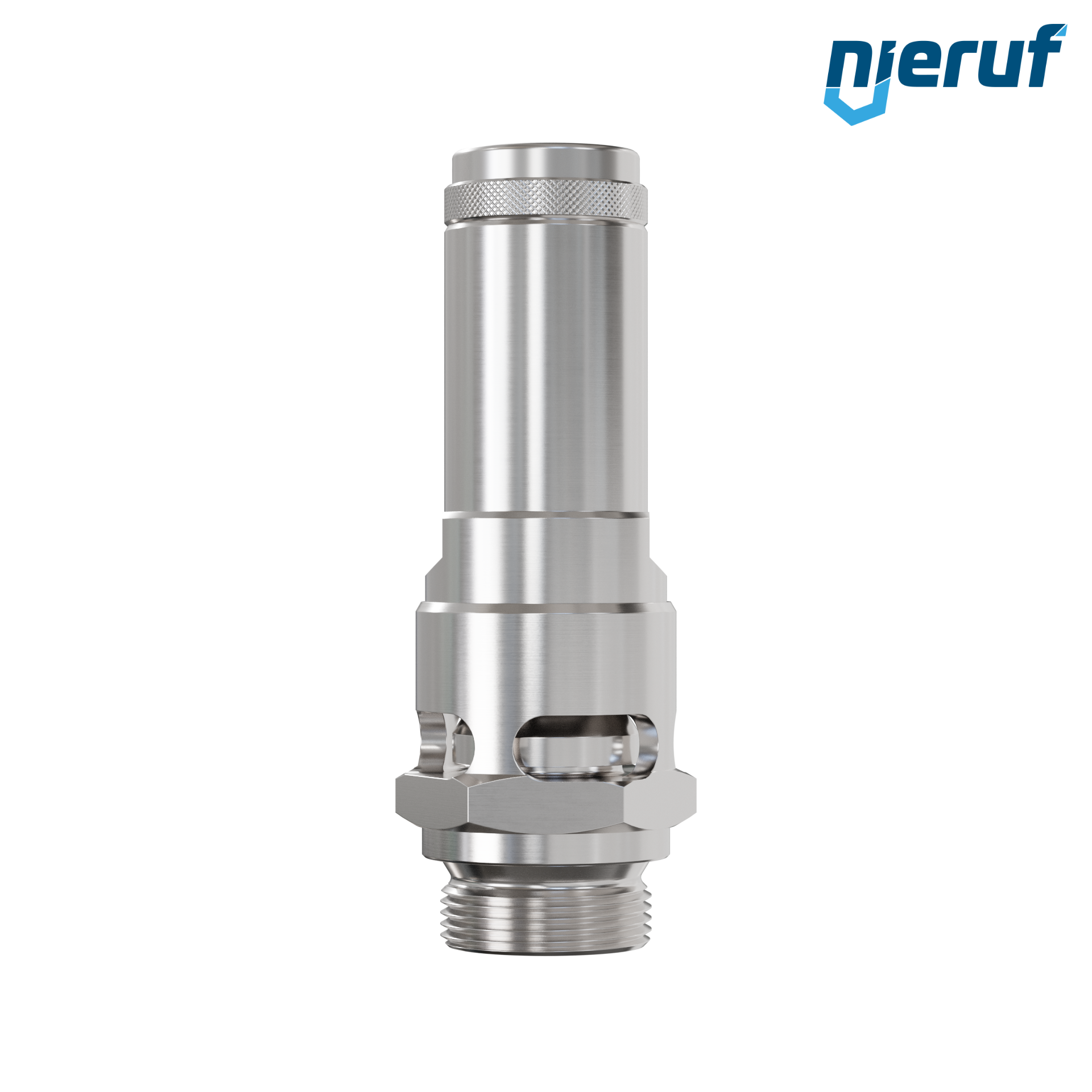 soupape de sûreté 1" mâle modèle SV02 avec décharge libre pour air comprimé et applications pneumatiques, en acier inoxydable avec joint en FKM , pression de réglage 0,2 - 25,0 bar - pour pressions plus élevées : version PTFE disponible