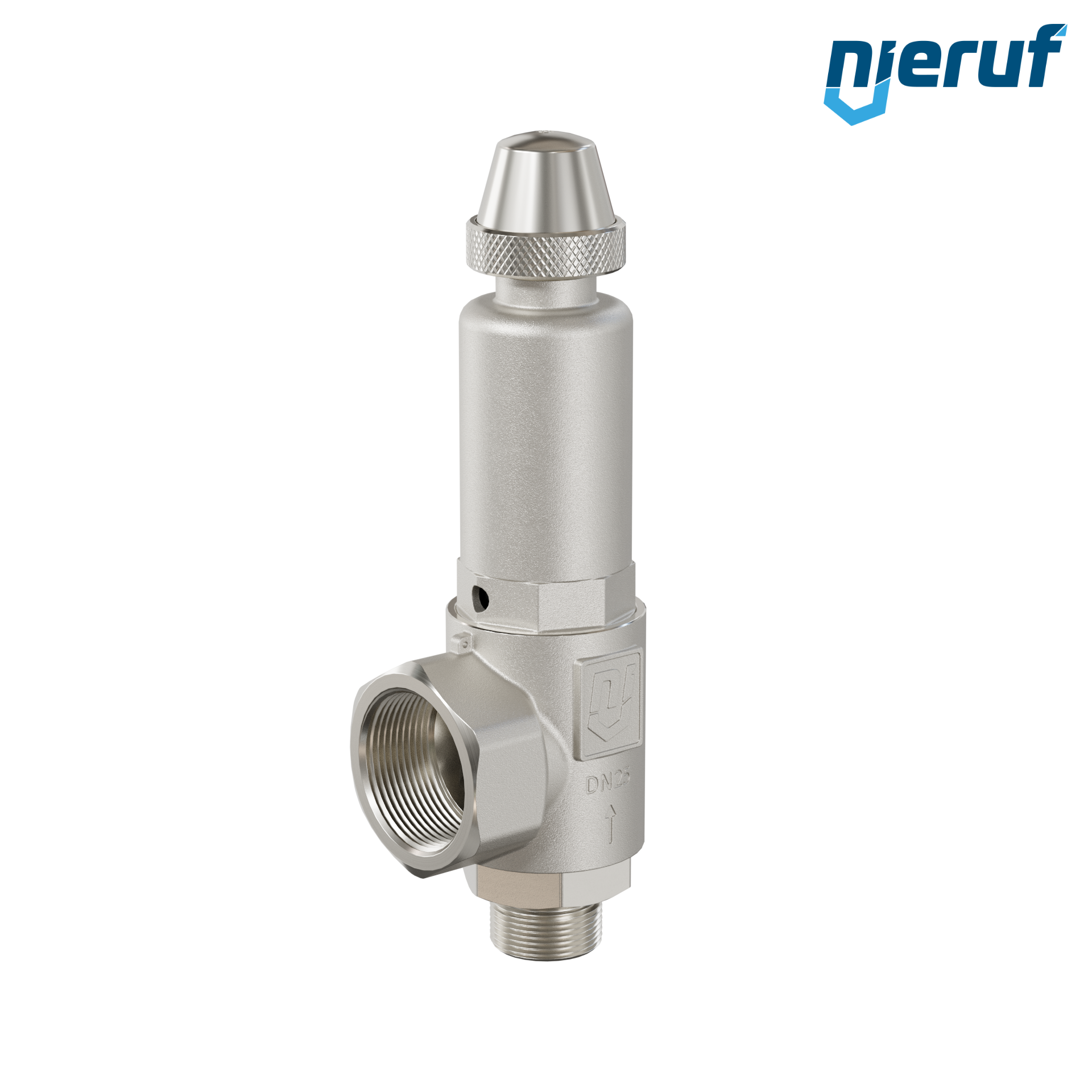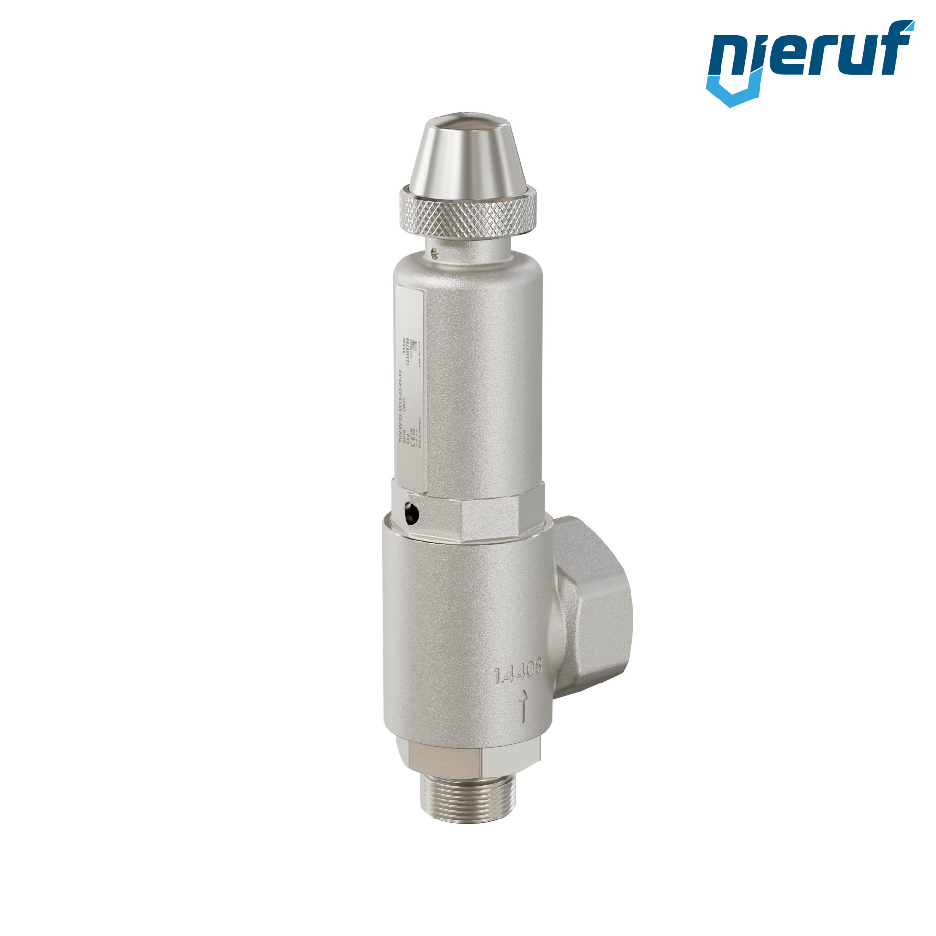 soupape de sûreté avec manchon d'étanchéité 1" mâle x 1 1/2" femelle SV10 pour fluides gazeux en acier inoxydable joint NBR réglage de la pression 0,5 - 25.0 bar - pour pressions plus élevées : version PTFE disponible