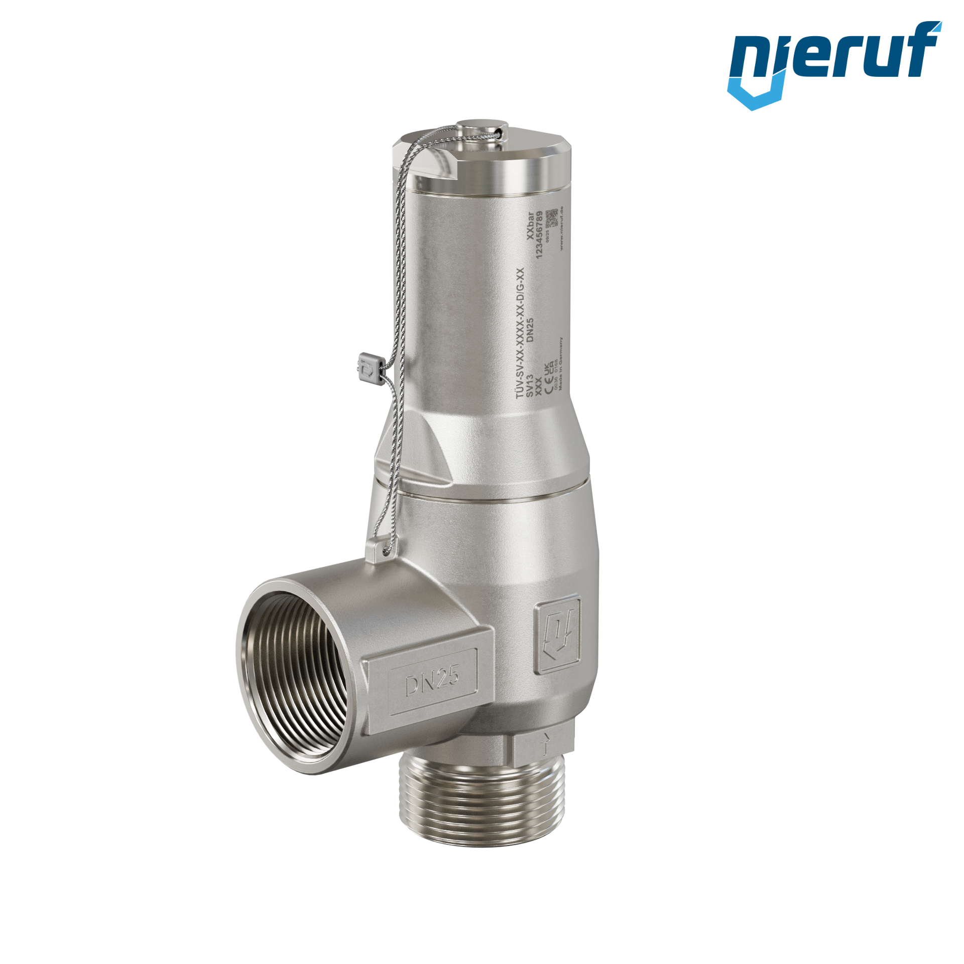 soupape de sûreté 1" mâle x 1" femelle SV13 pour fluides liquides et gazeux en acier inoxydable joint NBR pression 0,2 - 25,0 bar sans levier