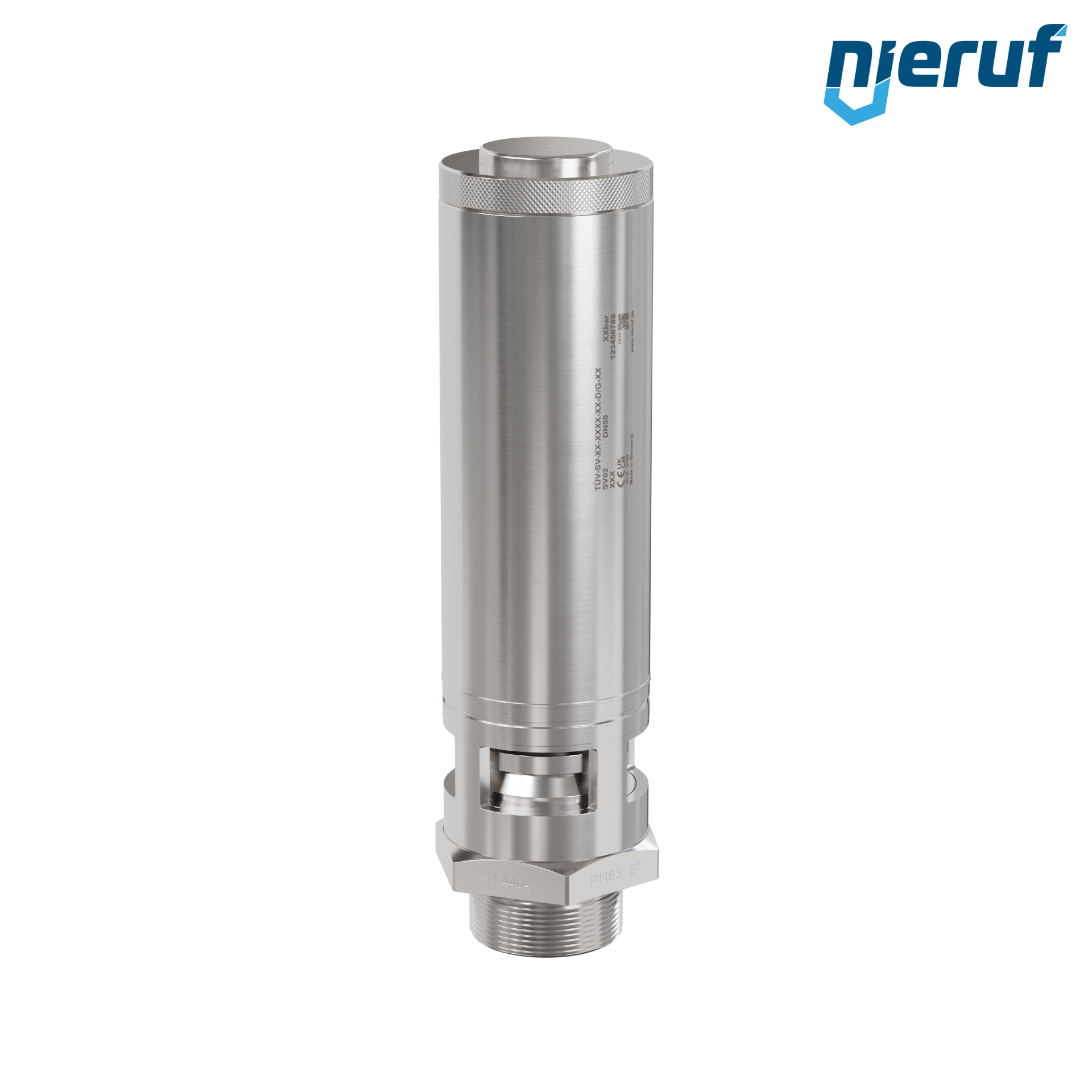 soupape de sûreté 2" mâle modèle SV02 avec décharge libre pour air comprimé et applications pneumatiques, en acier inoxydable avec joint en FKM , pression de réglage 0,2 - 25,0 bar - pour pressions plus élevées : version PTFE disponible