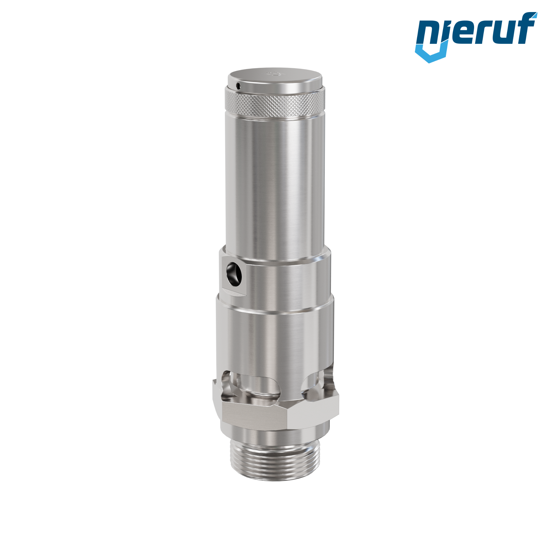 soupape de sûreté 3/4" mâle modèle SV02 avec décharge libre pour air comprimé et applications pneumatiques, en acier inoxydable avec joint en FKM , pression de réglage 0,2 - 25,0 bar - pour pressions plus élevées : version PTFE disponible