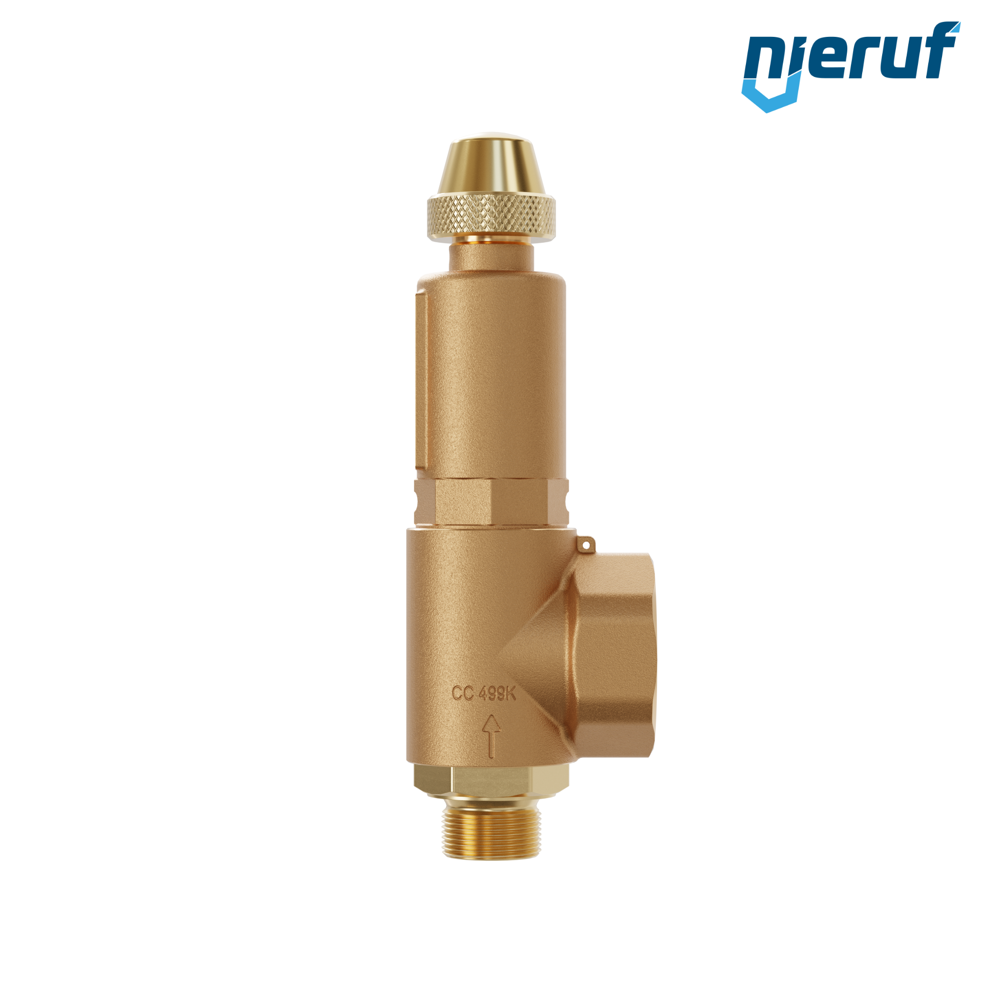 soupape de sûreté avec manchon d'étanchéité 3/4" mâle x 1 1/4" femelle SV08 pour fluides gazeux en bronze joint PTFE réglage de la pression 0,5 - 50,0 bar