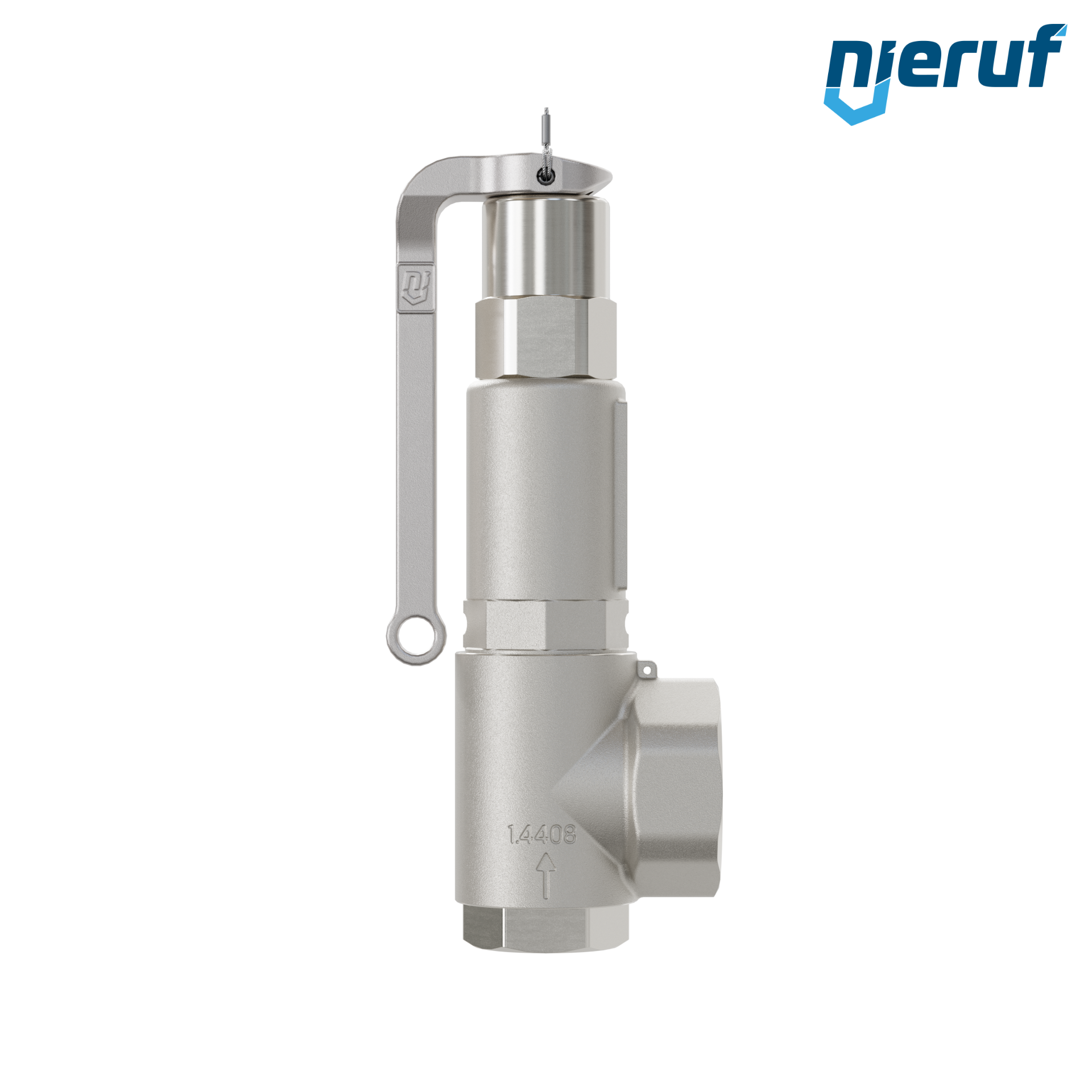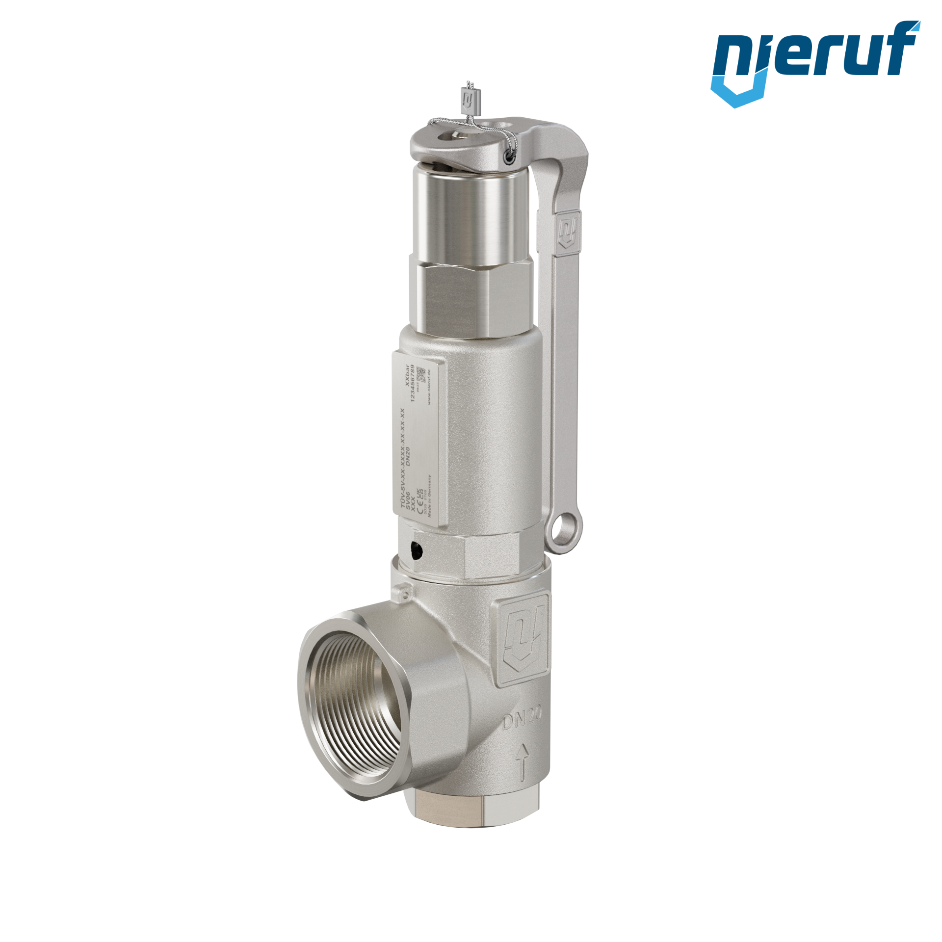 soupape de sûreté en équerre pour fluides liquides NBR 3/4" x 1 1/4" femelle acier inoxydable modèle SV06 avec femelle BSP-P avec levier et avec manchon d'étanchéité