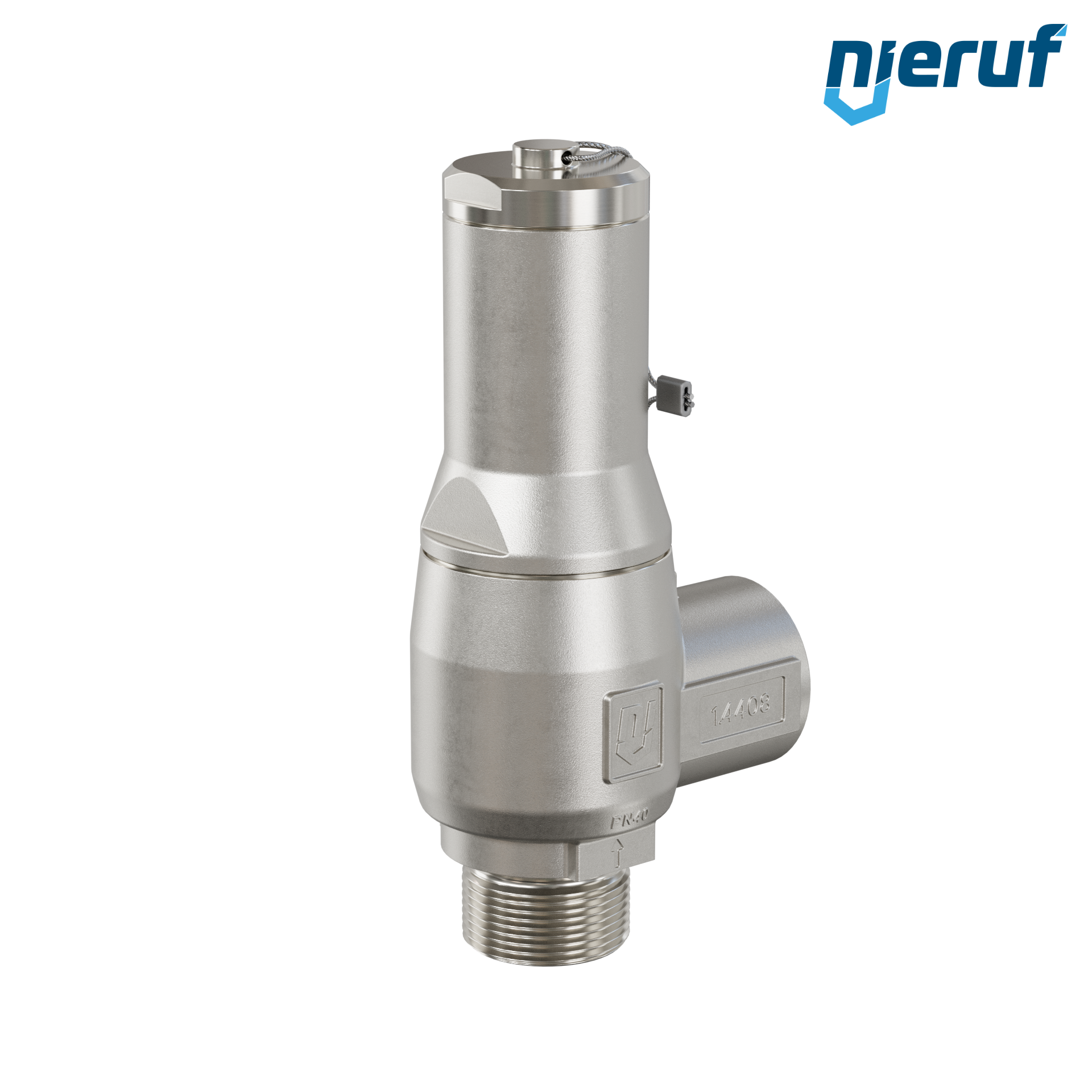 soupape de sûreté 3/4" mâle NPT x 3/4" femelle SV13 pour fluides liquides et gazeux en acier inoxydable joint PTFE pression 0,5- 25,0 bar sans levier