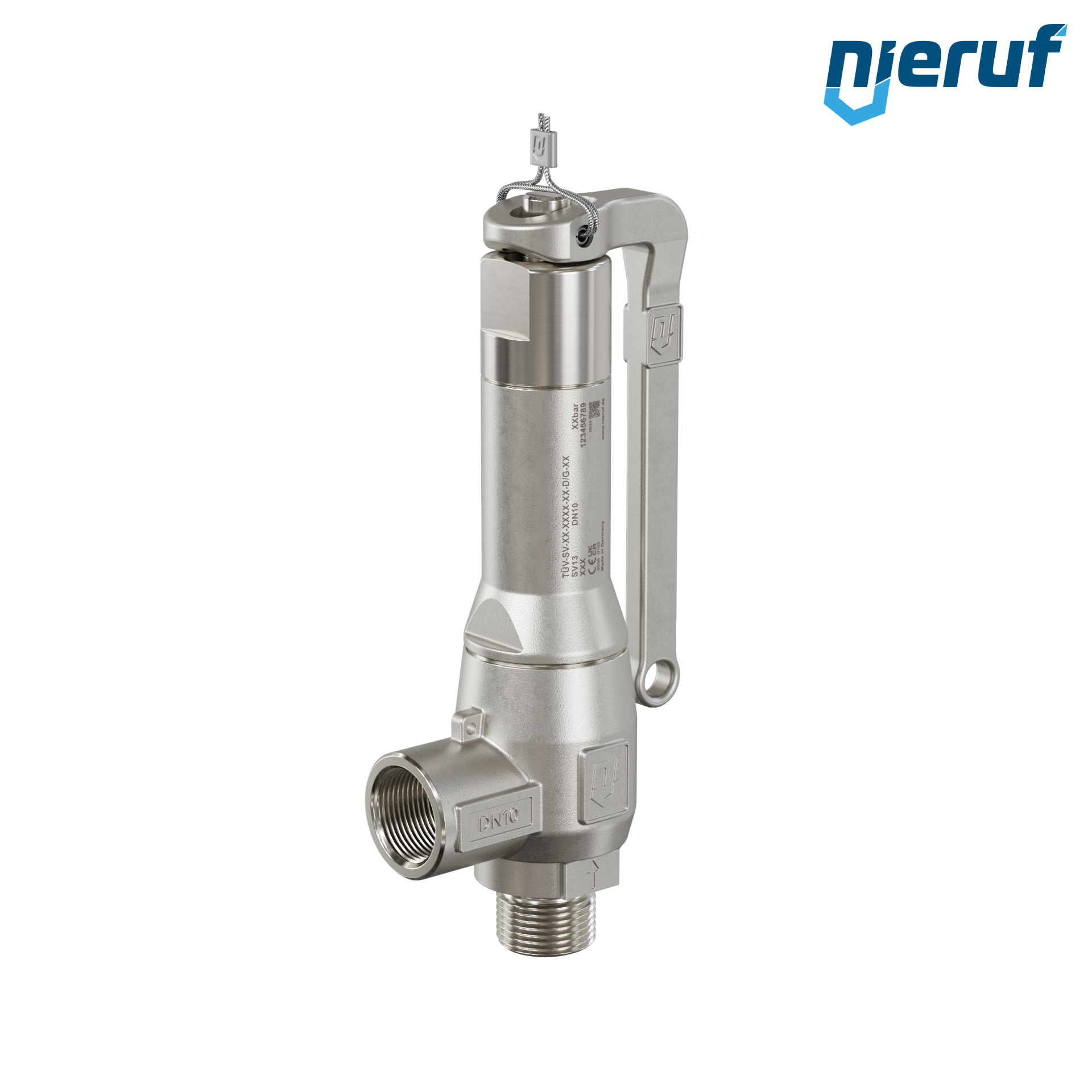 soupape de sûreté 3/8" mâle x 3/8" femelle SV13 pour fluides liquides et gazeux en acier inoxydable joint FKM pression 0,2 - 25,0 bar avec levier