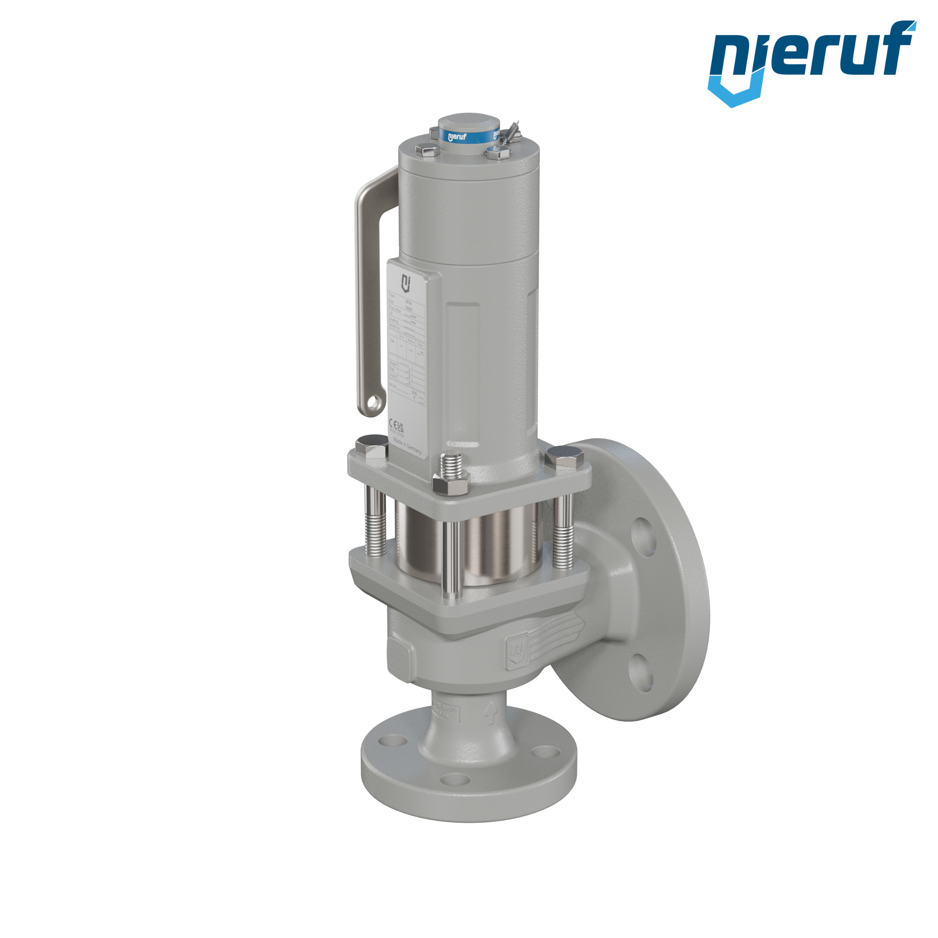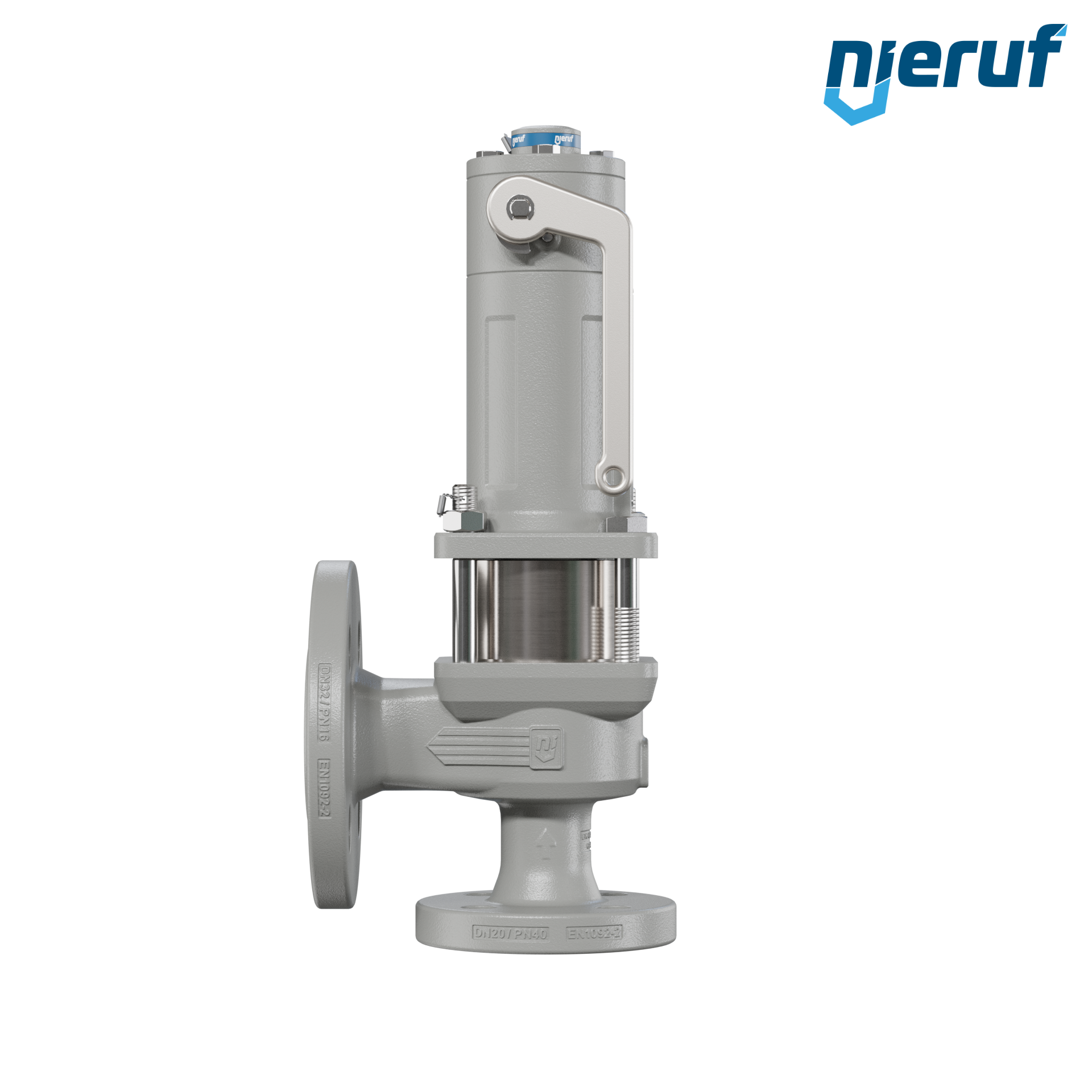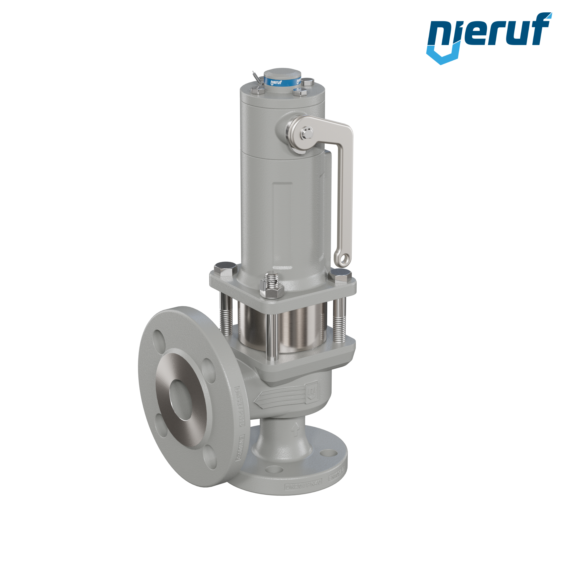 soupape de sûreté à brides étanche au gaz DN20/DN32 SF06 pour fluides liquides et gazeux en fonte à graphite sphéroïdal DIN EN 5.3103 joint FKM réglage de la pression 0,4 - 40,0 bar dispositif de levage avec levier avec manchon d'étanchéité