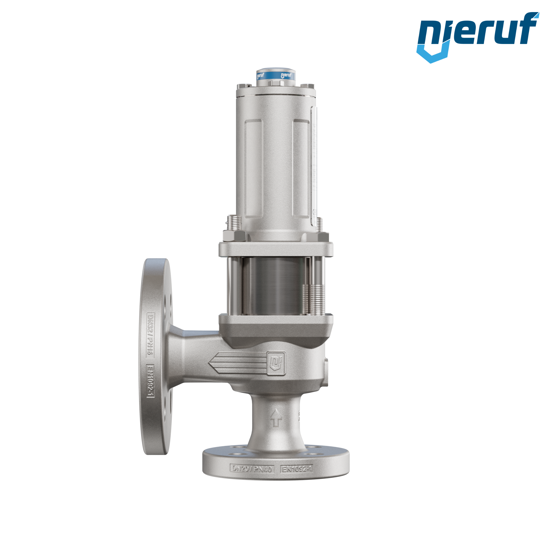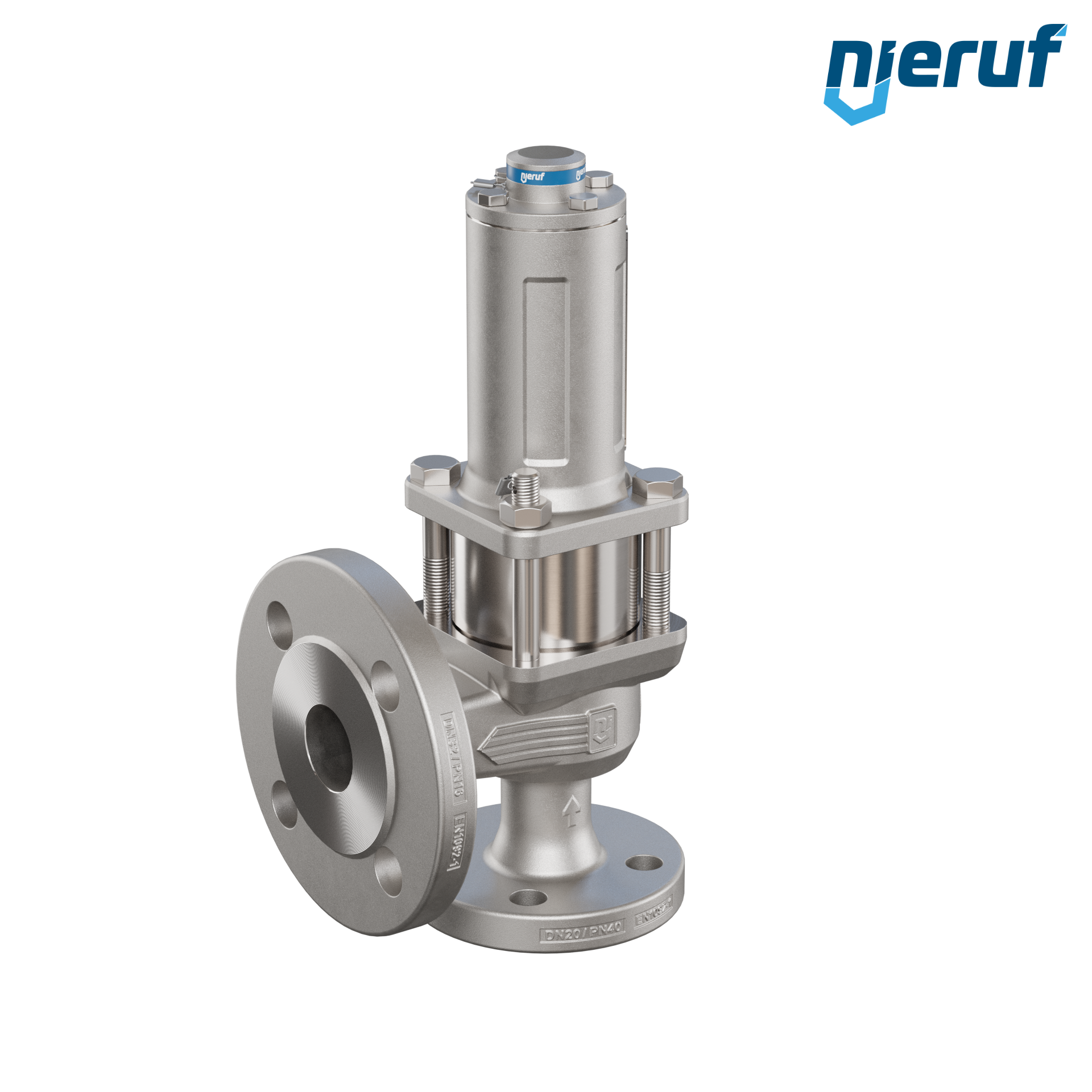 soupape de sûreté à brides DN20/DN32 SF04 avec manchon d'étanchéité -étanche au gaz en acier inoxydable 1.4408 joint métal réglage de la pression 0,4 - 40,0 bar