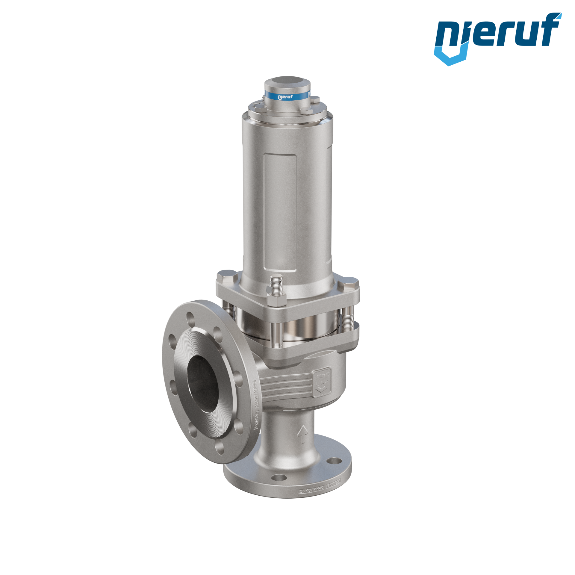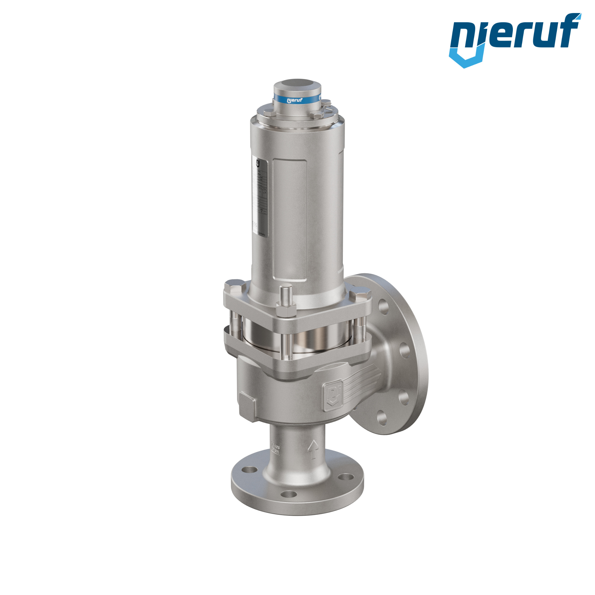 soupape de sûreté à brides DN40/DN65 SF04 avec manchon d'étanchéité -étanche au gaz en acier inoxydable 1.4408 joint PTFE réglage de la pression 0,5 - 40,0 bar