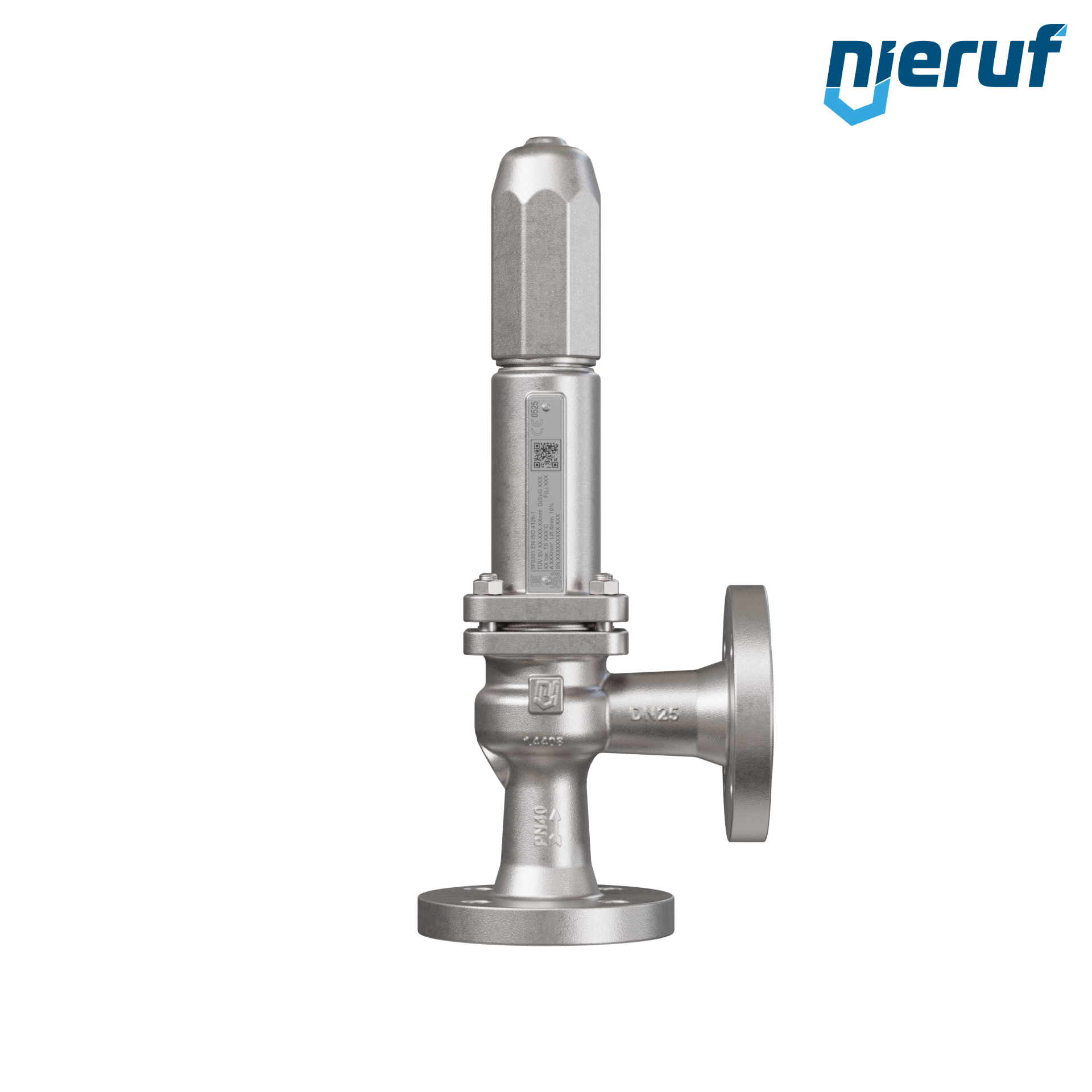 soupape de sûreté à brides entrée DN25 sortie DN25 pour fluides liquides et gazeux, en acier inoxydable 1.4408 joint EPDM pression 0,5 jusqu'à un maximum de 40 bar