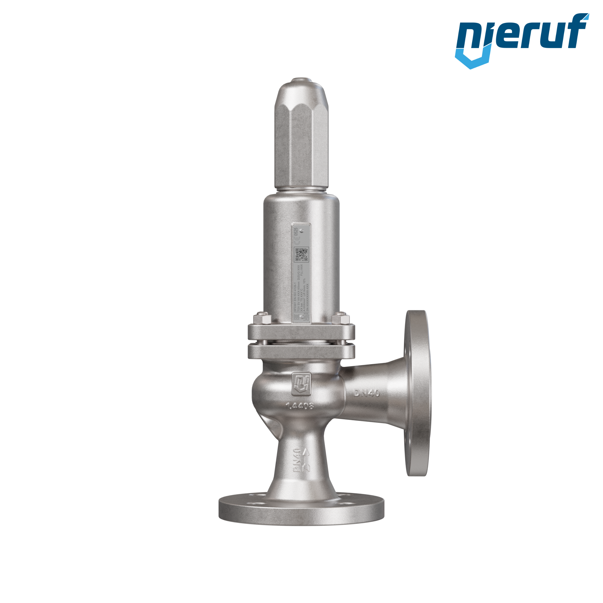 soupape de sûreté à brides entrée DN40 sortie DN40 pour fluides liquides et gazeux, en acier inoxydable 1.4408 joint FPM pression 0,5 jusqu'à un maximum de 40 bar