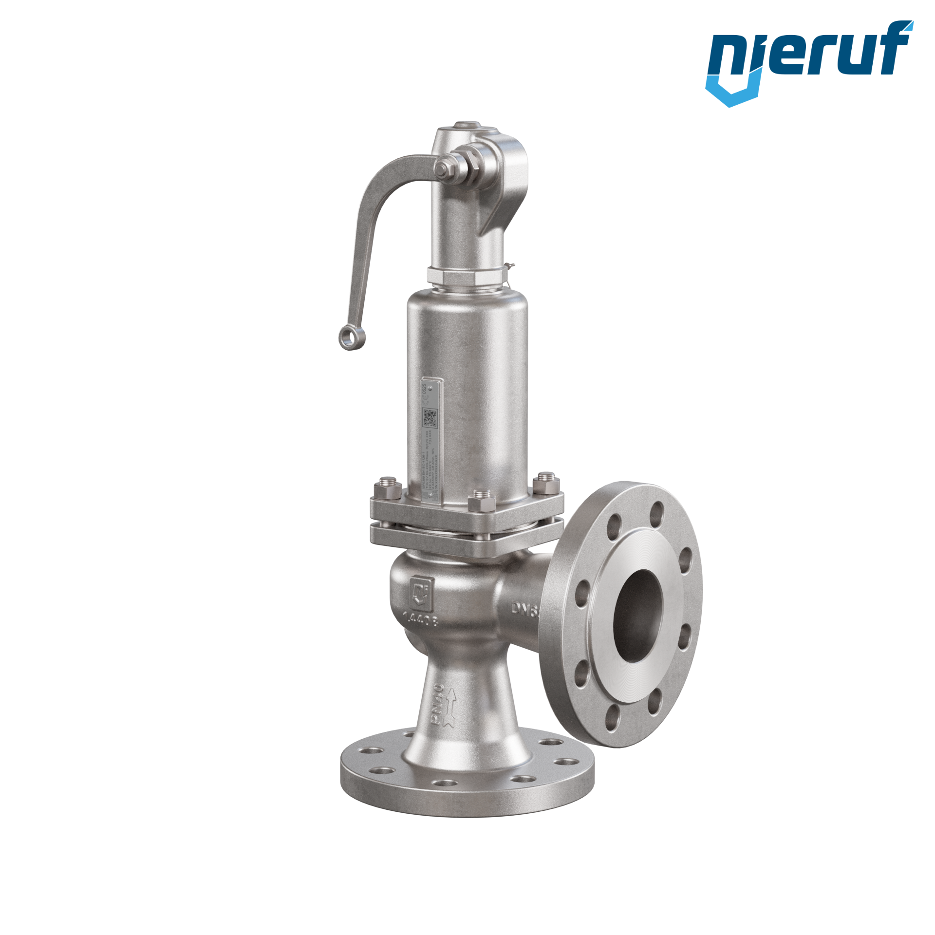 soupape de sûreté à brides DN65 SF03 pour fluides liquides et gazeux en acier inoxydable 1.4408 joint FPM pression 0,5 jusqu'à un maximum de 30 bar avec levier