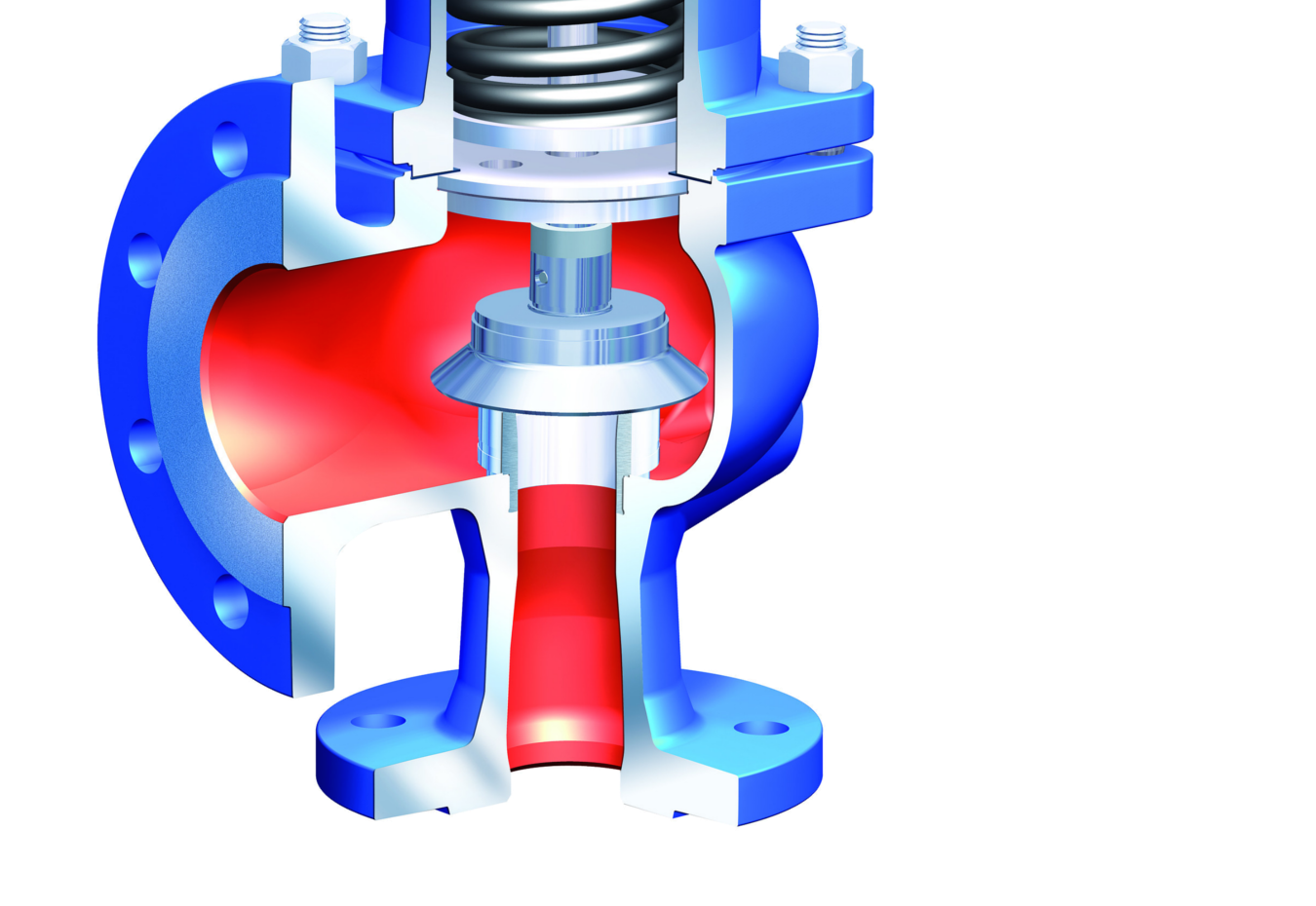 soupape de sûreté à brides DN40/DN40 pression 0,5 jusqu'à un maximum de 40 bar sans levier pour fluides liquides et gazeux en acier moulé 1.0619+N