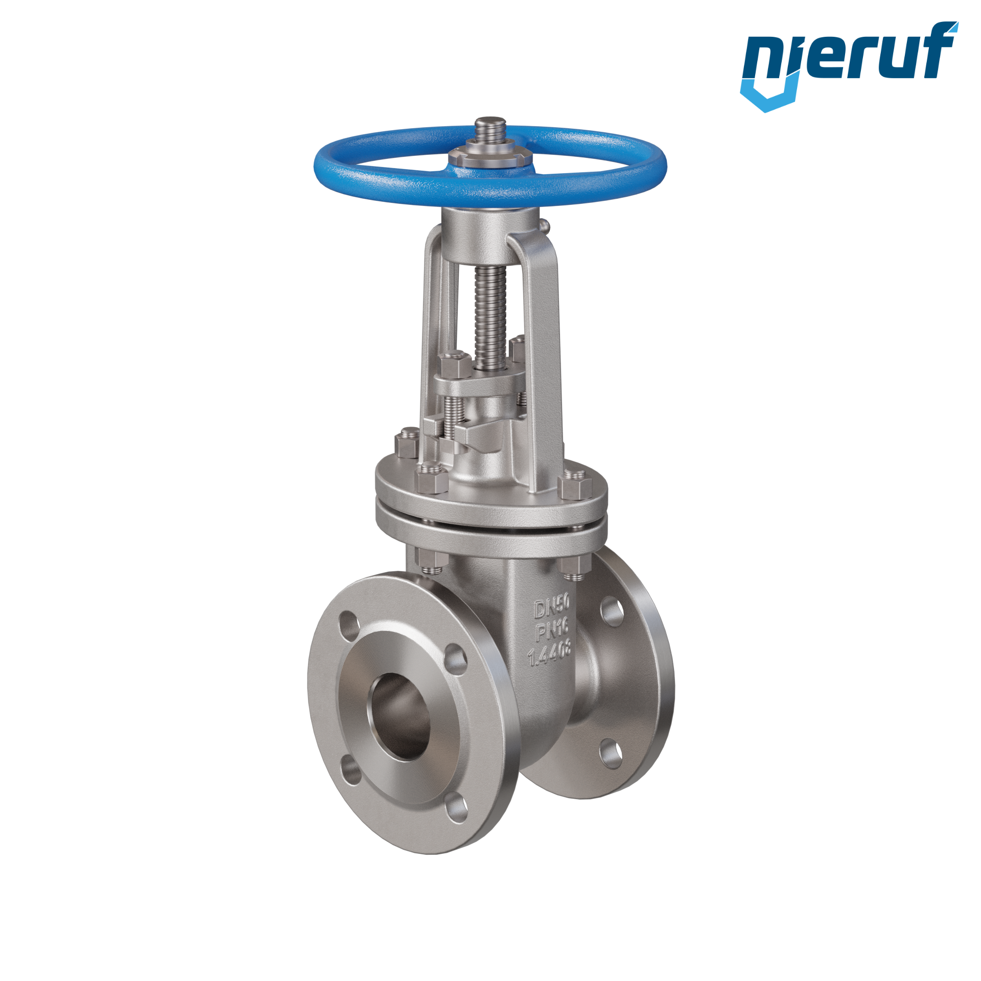 Vanne à opercule plat AS03 en Passage droit DN50 PN16 avec bride selon DIN EN 1092, Matière acier inoxydable 1.4408
