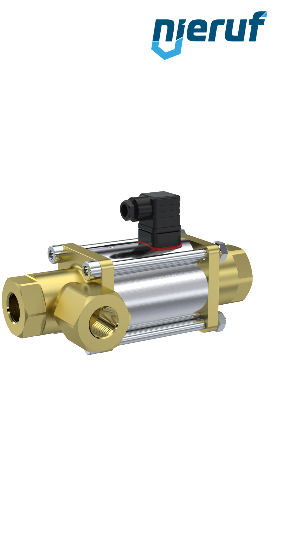 vanne coaxiale à 3/2 voies 3/8" pouce femelle - DN10 en laiton, à commande directe jusqu'à 40 bars maximum, NO - normalement ouvert, voltage 230V AC - pour l'eau