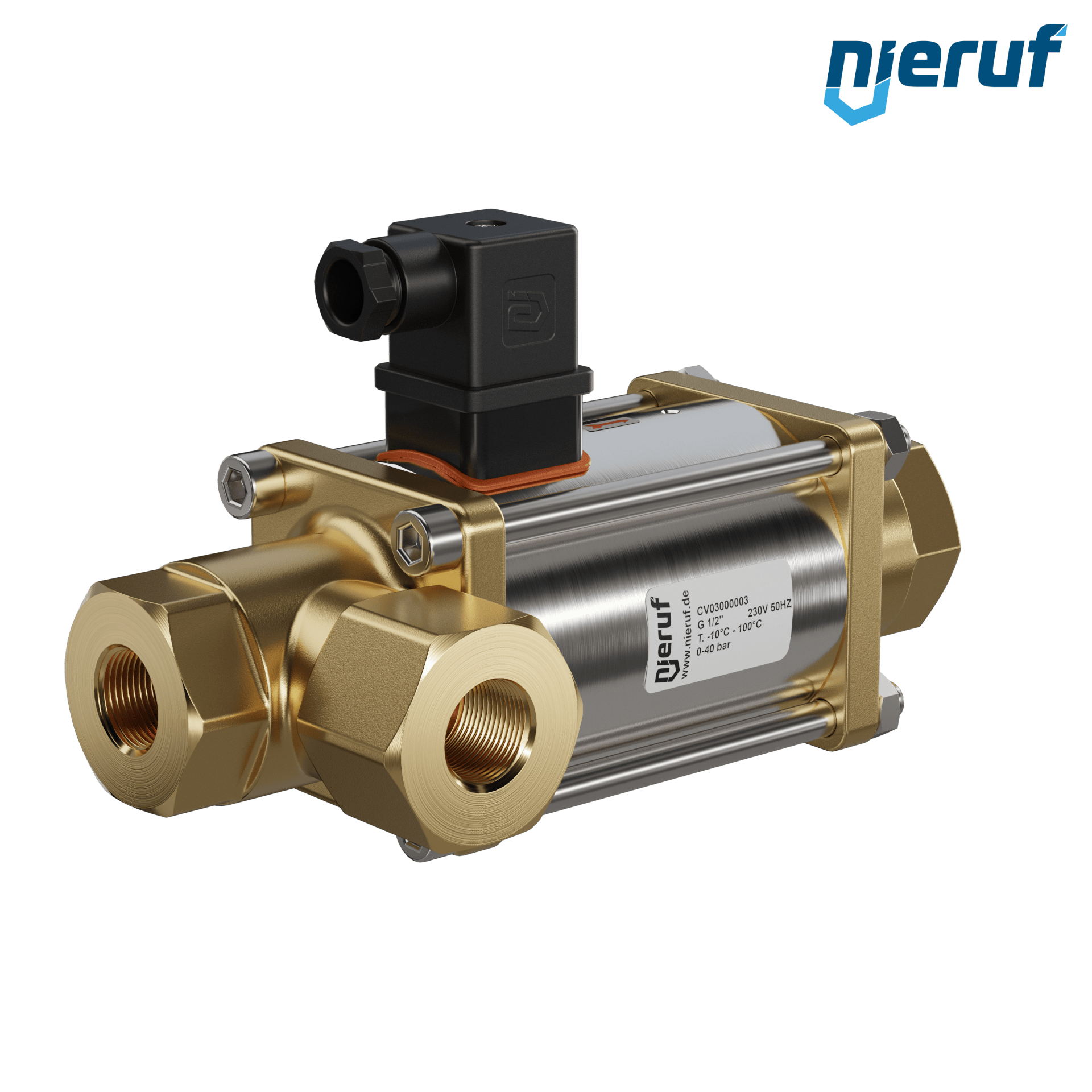 vanne coaxiale à 3/2 voies 1/2" pouce femelle - DN15 en laiton, à commande directe jusqu'à 40 bars maximum, NC - normalement fermé, voltage 230V AC