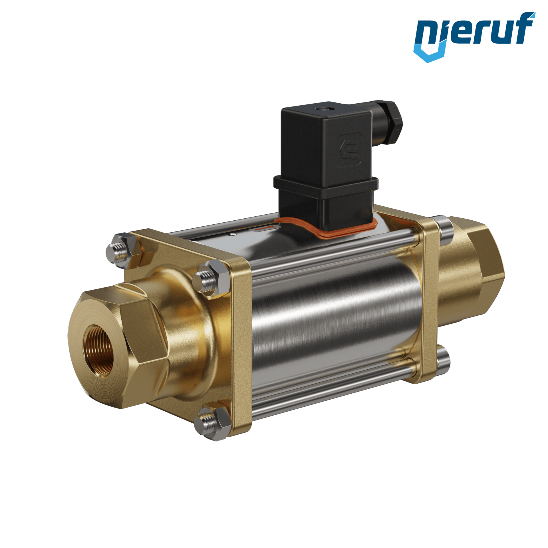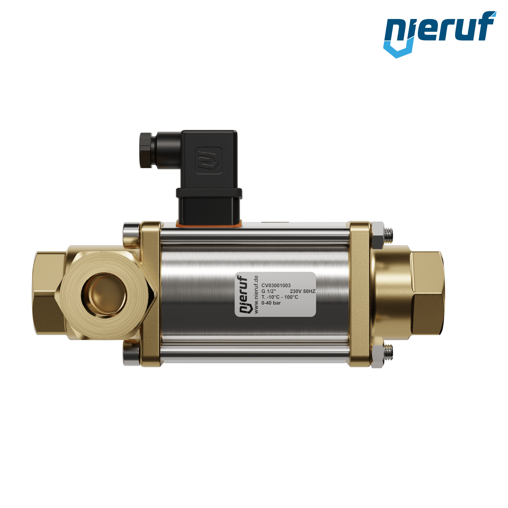 vanne coaxiale à 3/2 voies 1/2" pouce femelle - DN15 en laiton, à commande directe jusqu'à 40 bars maximum, NC - normalement fermé, voltage 230V AC - pour l'eau