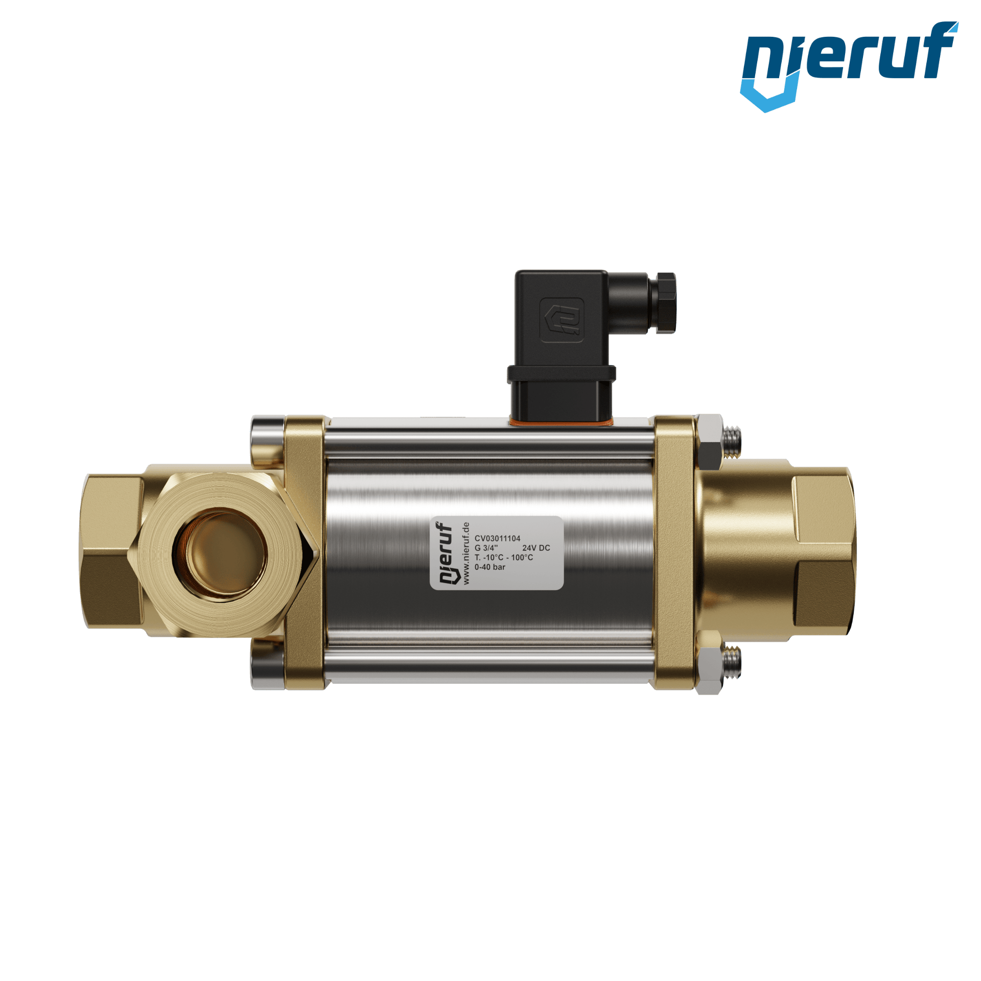 vanne coaxiale à 3/2 voies 3/4" pouce femelle - DN20 en laiton, à commande directe jusqu'à 40 bars maximum, NO - normalement ouvert, voltage 24V DC - pour l'eau