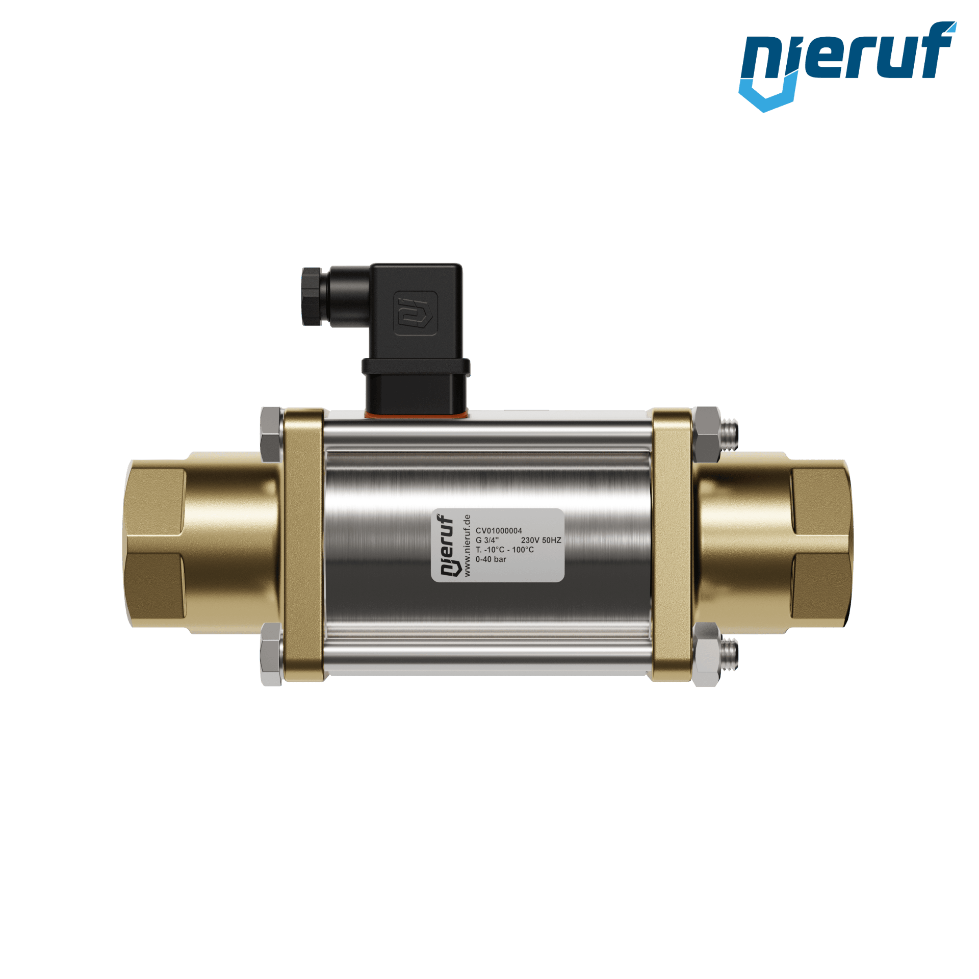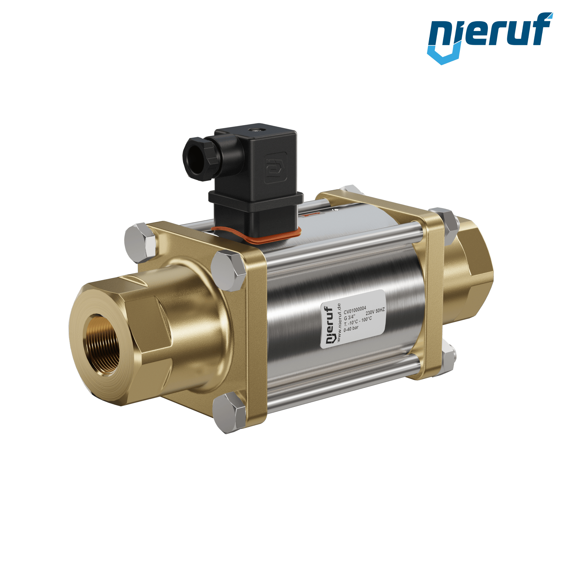 vanne coaxiale à 2/2 voies 3/4" pouce femelle - DN20 en laiton, à commande directe jusqu'à 40 bars maximum, NC - normalement fermé, voltage 230V AC