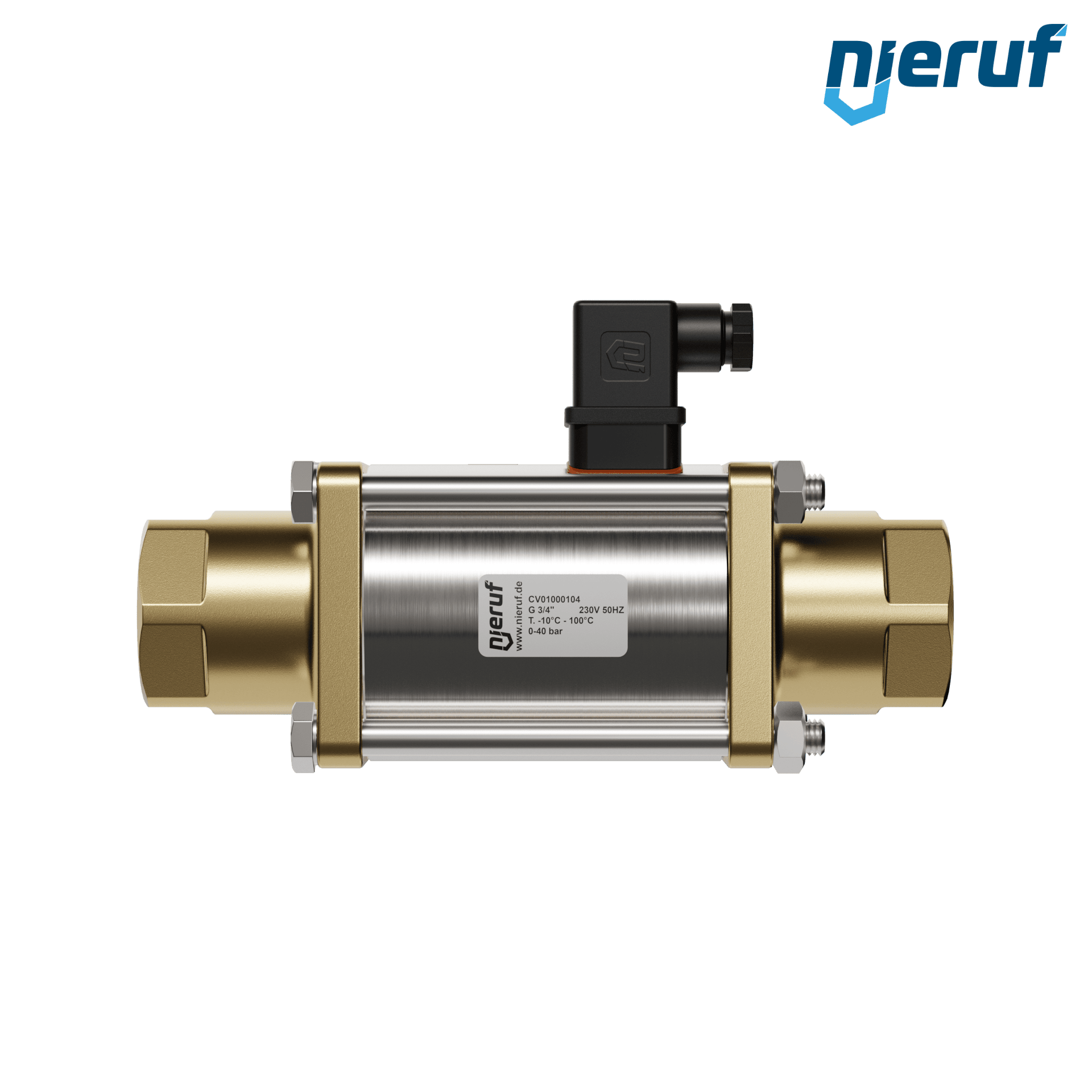 vanne coaxiale à 2/2 voies 3/4" pouce femelle - DN20 en laiton, à commande directe jusqu'à 40 bars maximum, NO - normalement ouvert, voltage 230V AC