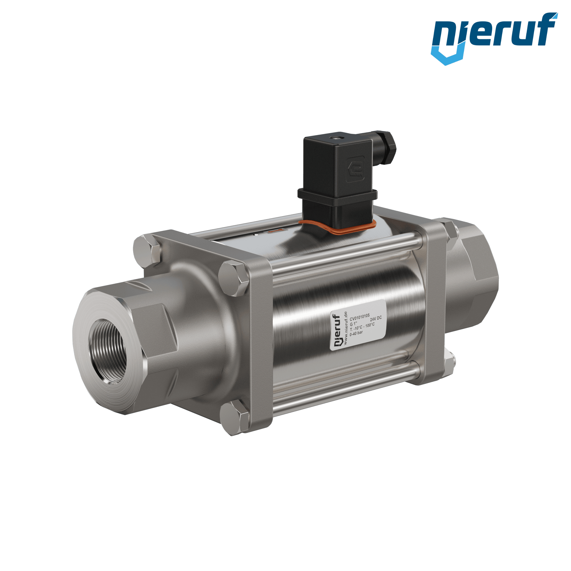 vanne coaxiale à 2/2 voies 1" pouce femelle - DN25 en laiton, à commande directe jusqu'à 40 bars maximum, NO - normalement ouvert, voltage 24V DC