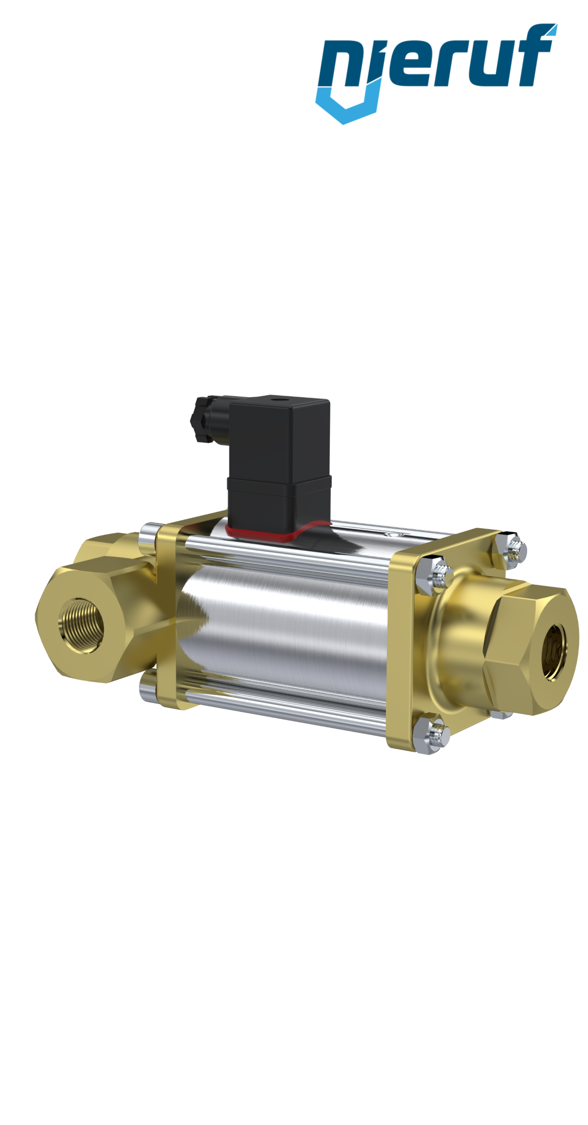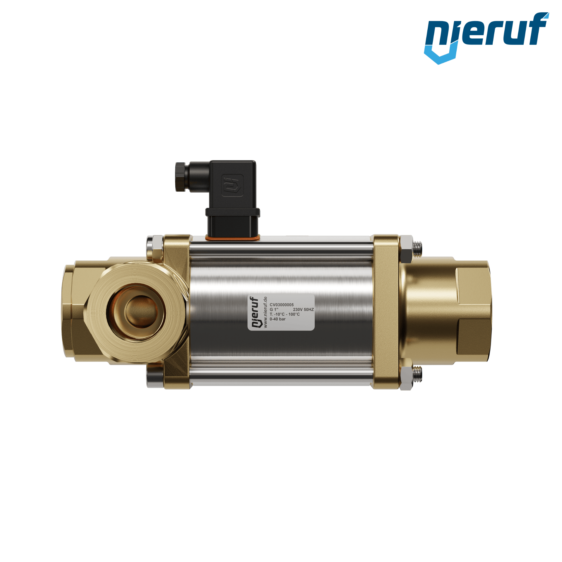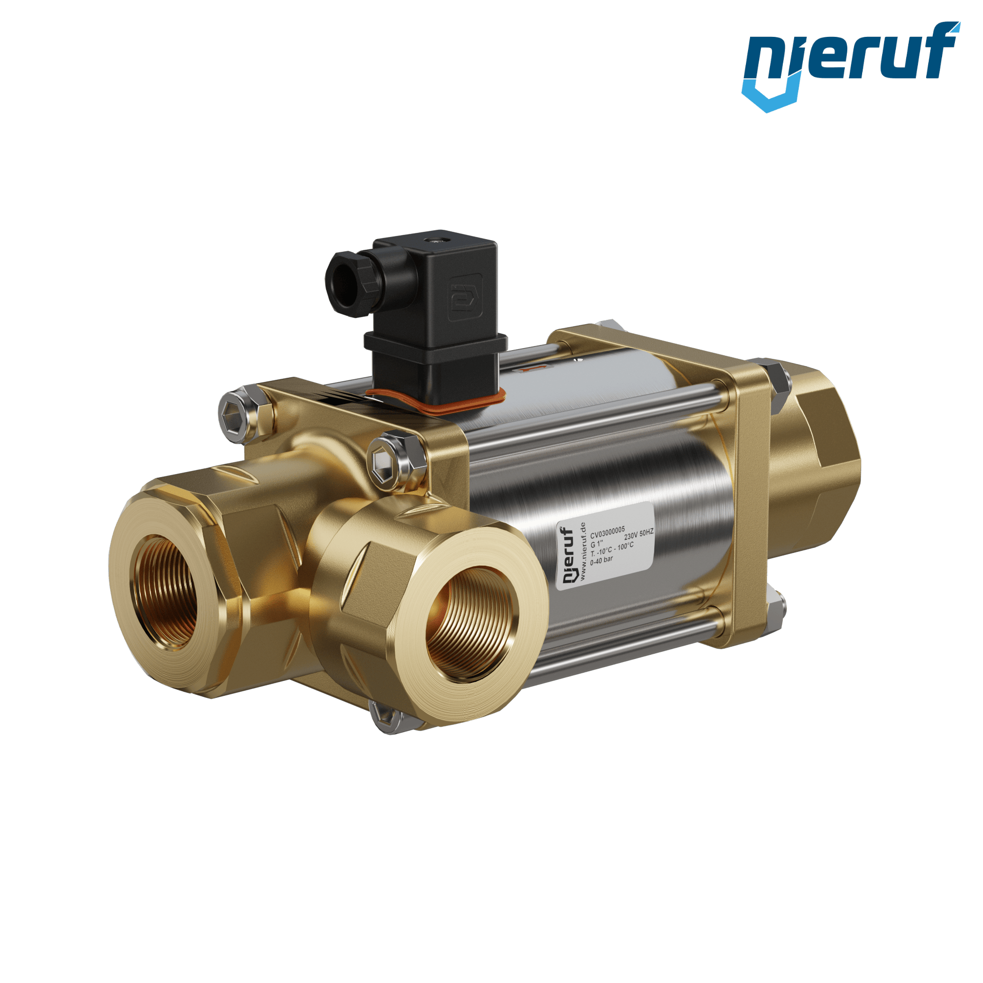 vanne coaxiale à 3/2 voies 1" pouce femelle - DN25 en laiton, à commande directe jusqu'à 40 bars maximum, NC - normalement fermé, voltage 230V AC