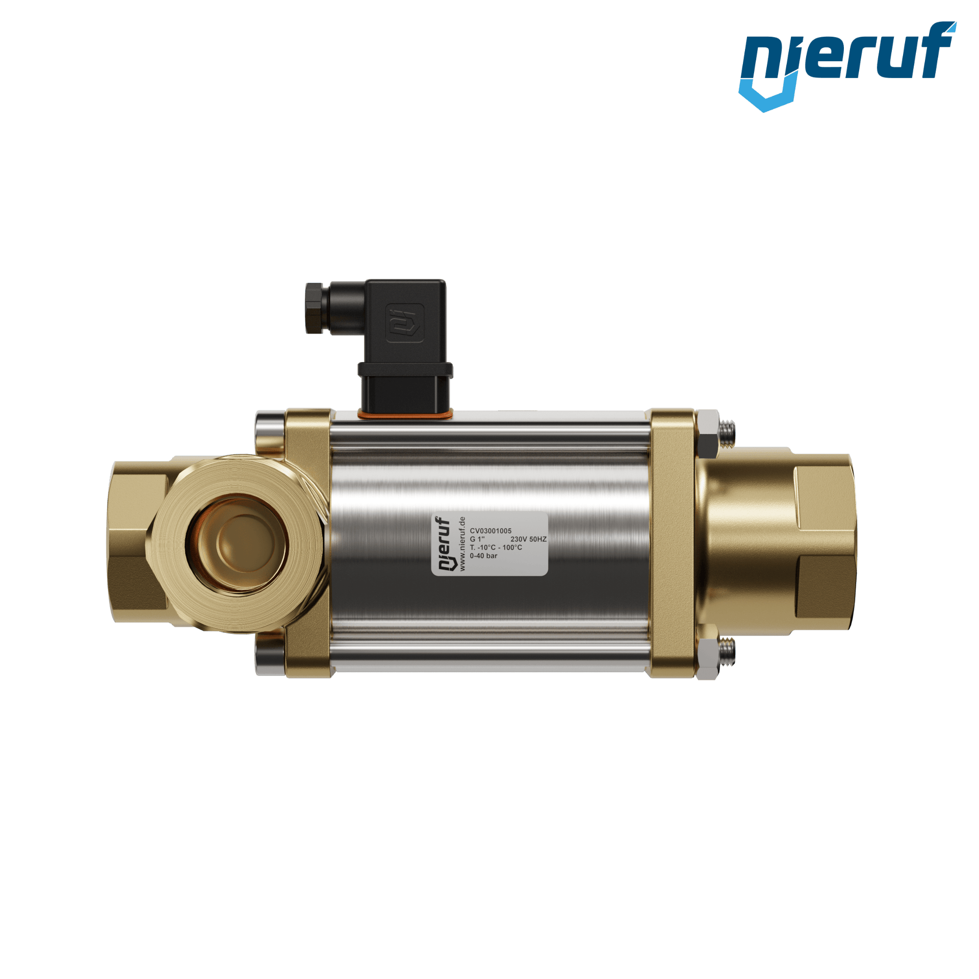 vanne coaxiale à 3/2 voies 1" pouce femelle - DN25 en laiton, à commande directe jusqu'à 40 bars maximum, NC - normalement fermé, voltage 230V AC - pour l'eau