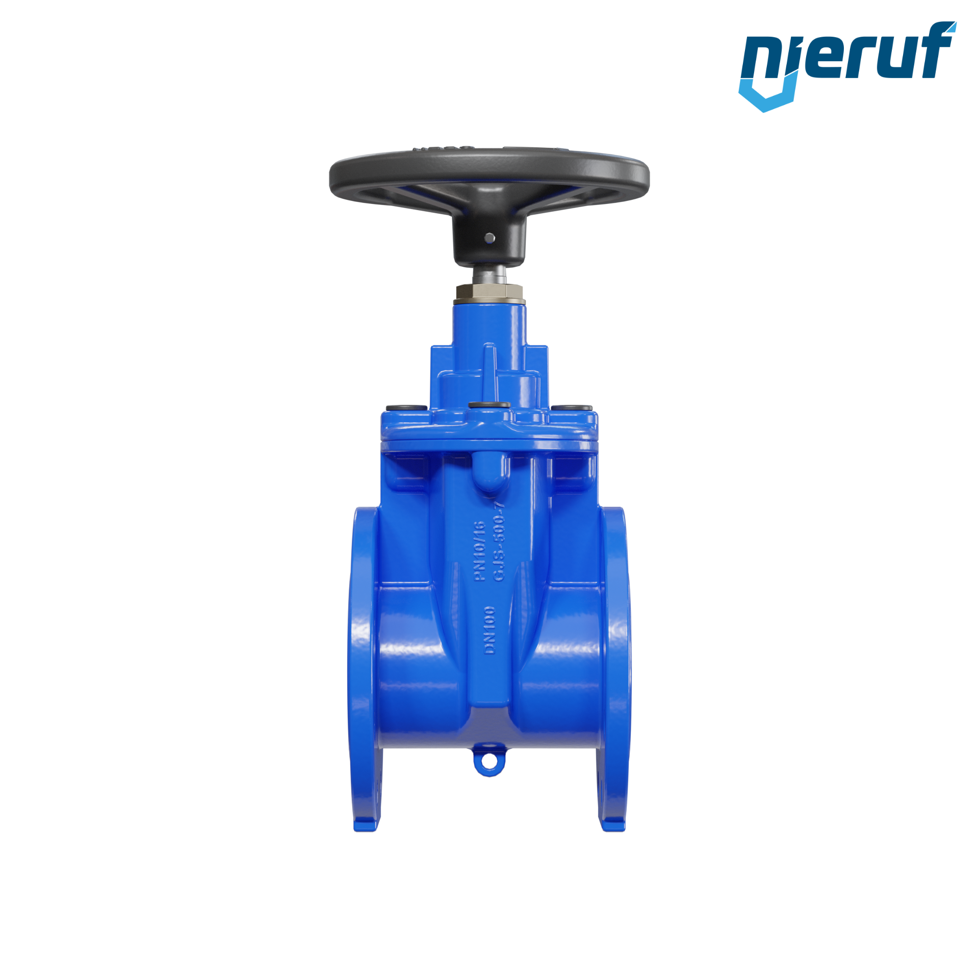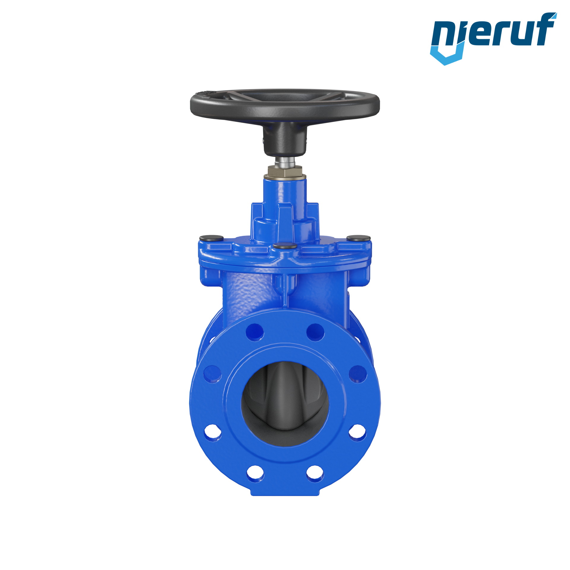 vanne à opercule plat en passage droit avec raccordement à bride et tige non montante ainsi que volant non montant.