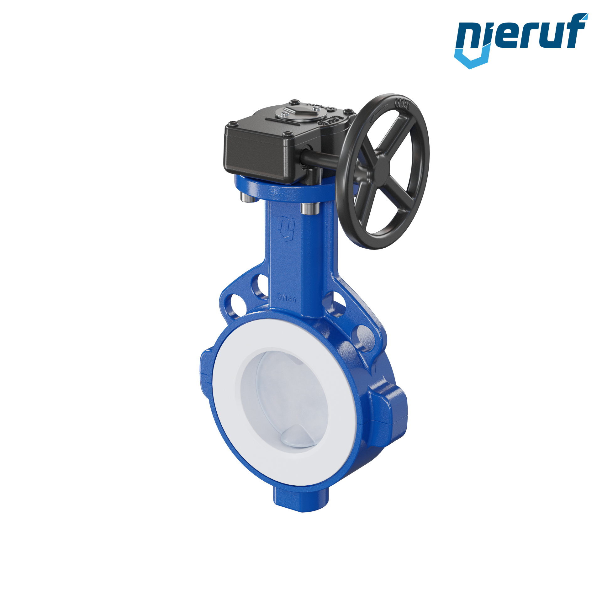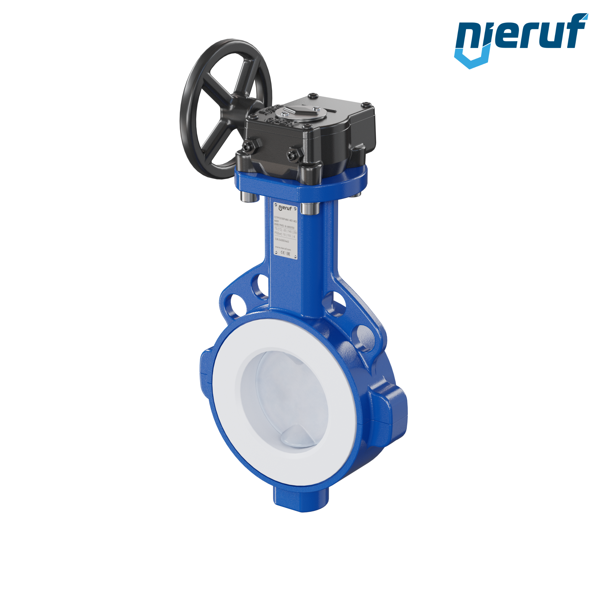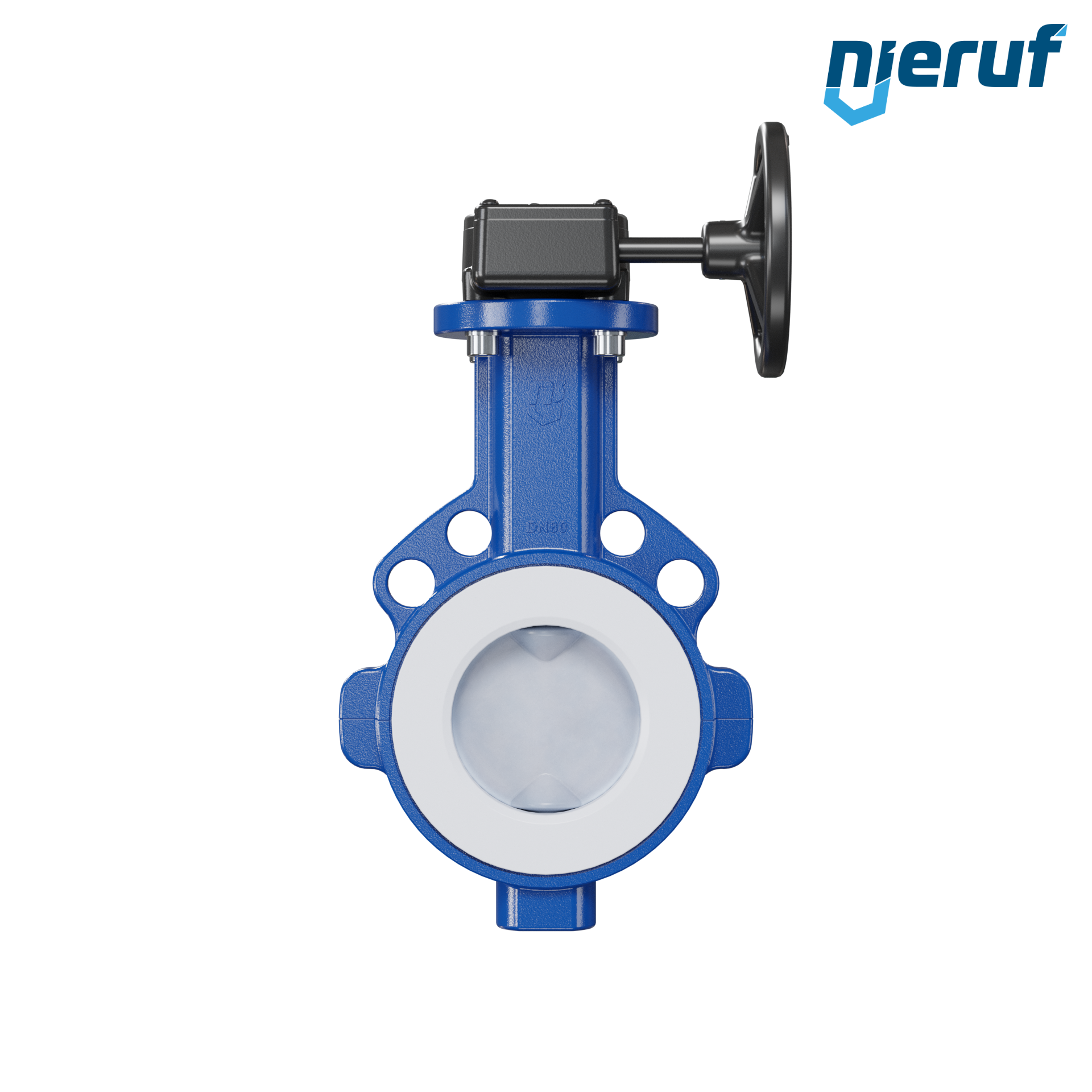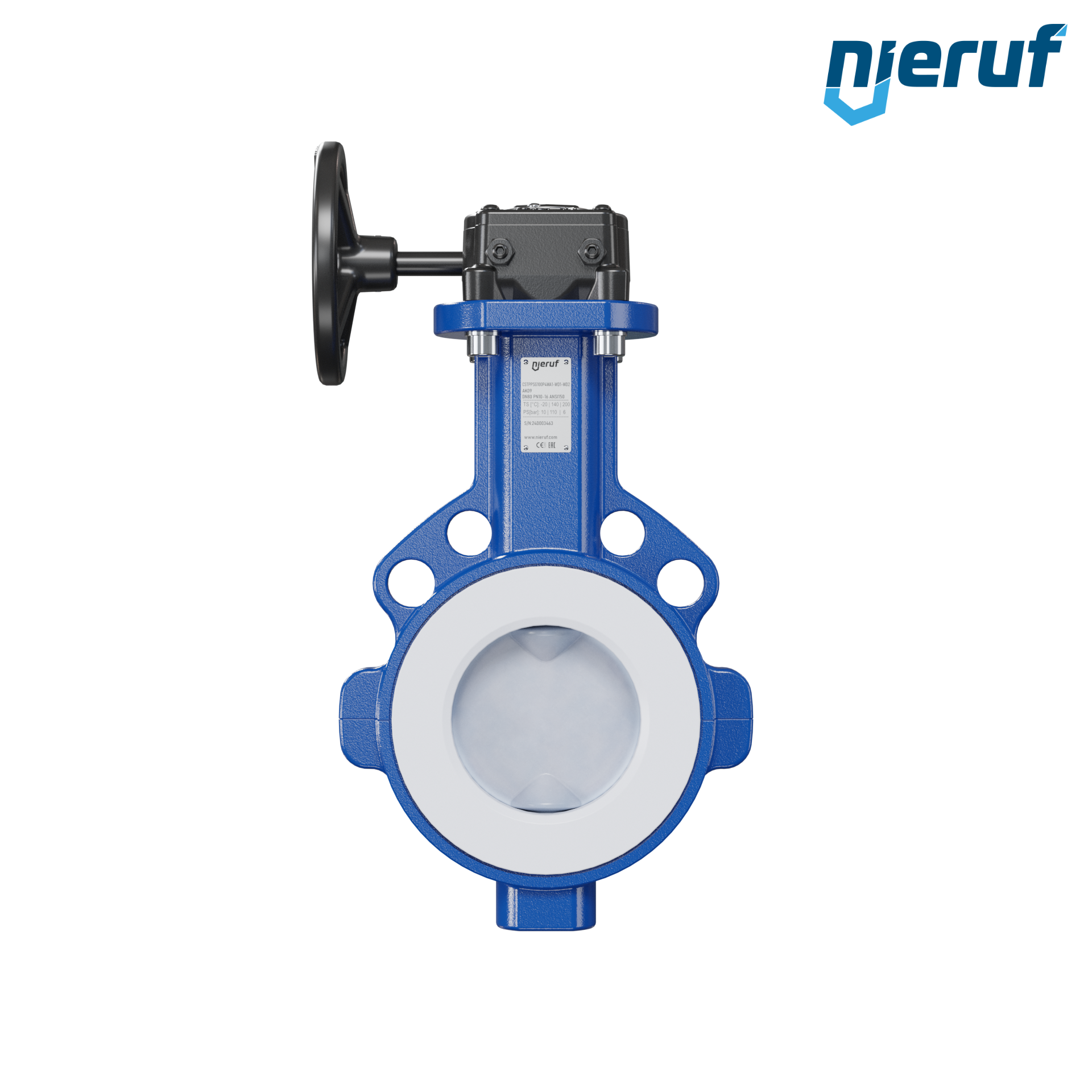 vanne papillon PTFE AK09 DN80 PN10-PN16 réducteur à volant insertion FKM
