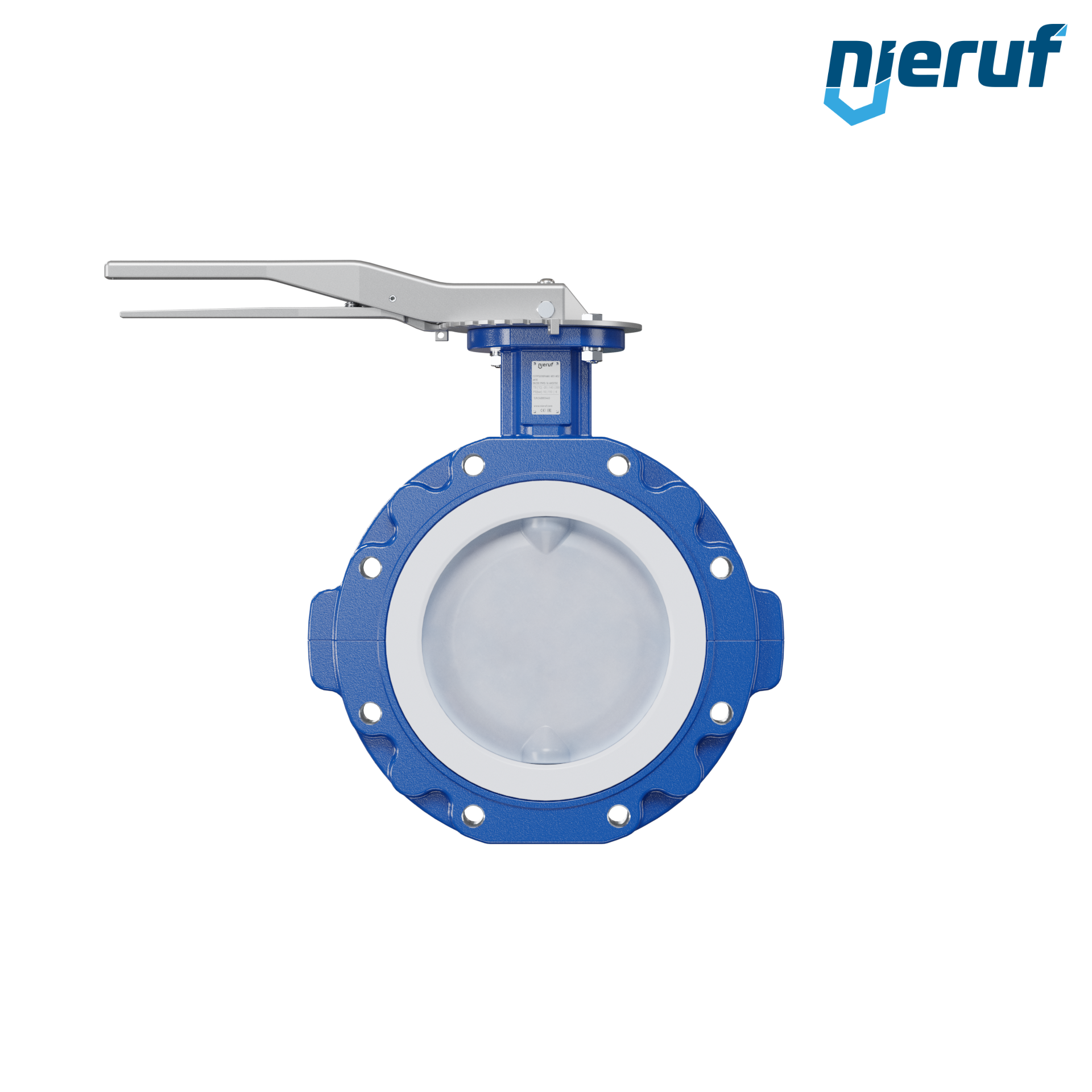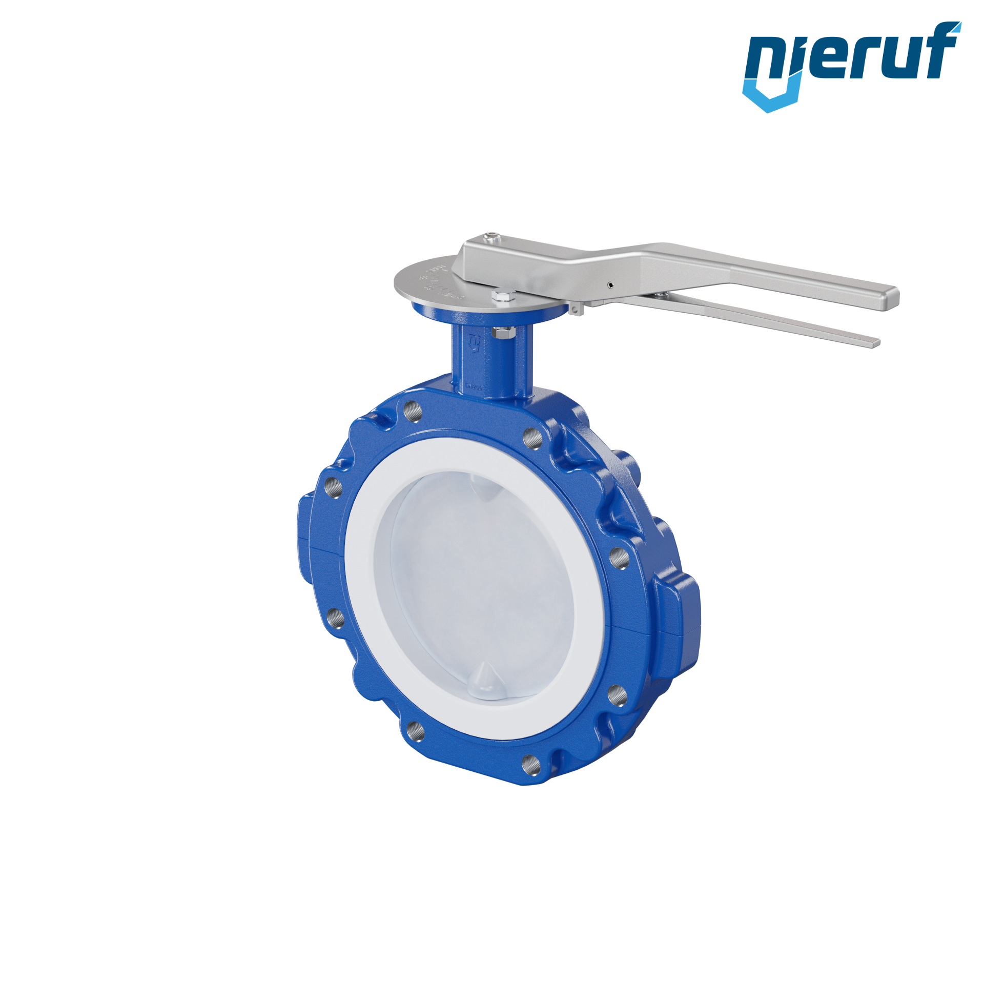 Vanne papillon avec manchette en PTFE et papillon en acier inoxydable pour les fluides agressifs.